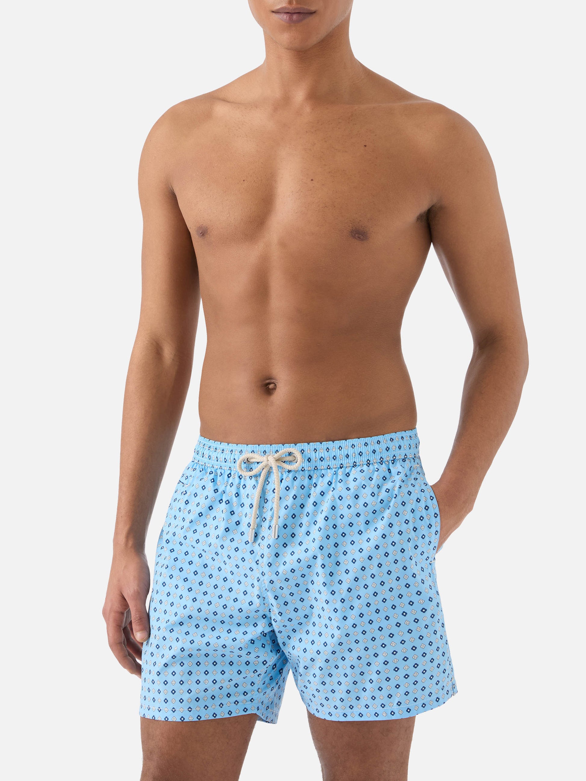 Light blue Lighting Micro swim shorts with all-over geometric print