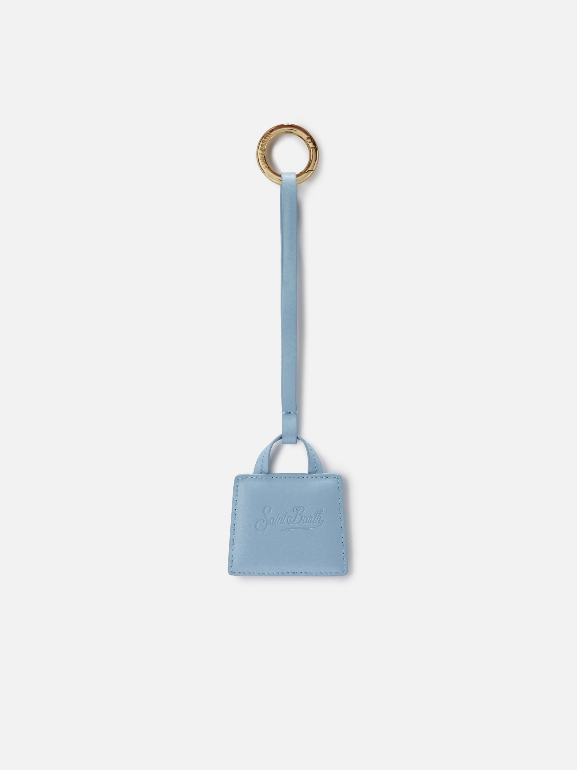 Light blue smooth leather bag charm with embossed logo