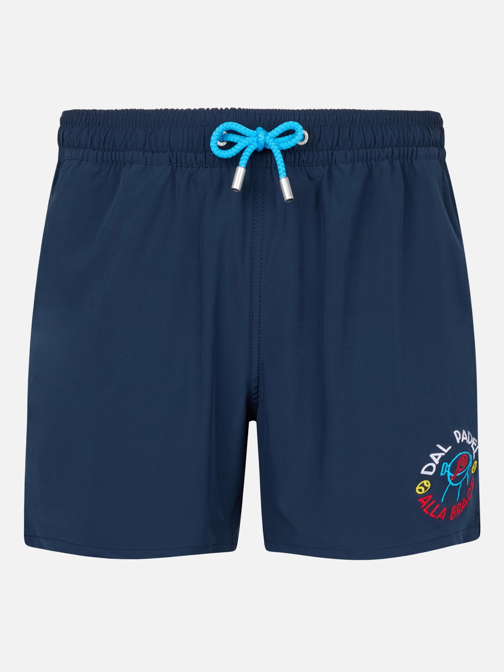 Comfort classic stretch swim shorts with Dal Padel alla Brace embroidery | INSULTI LUMINOSI SPECIAL EDITION