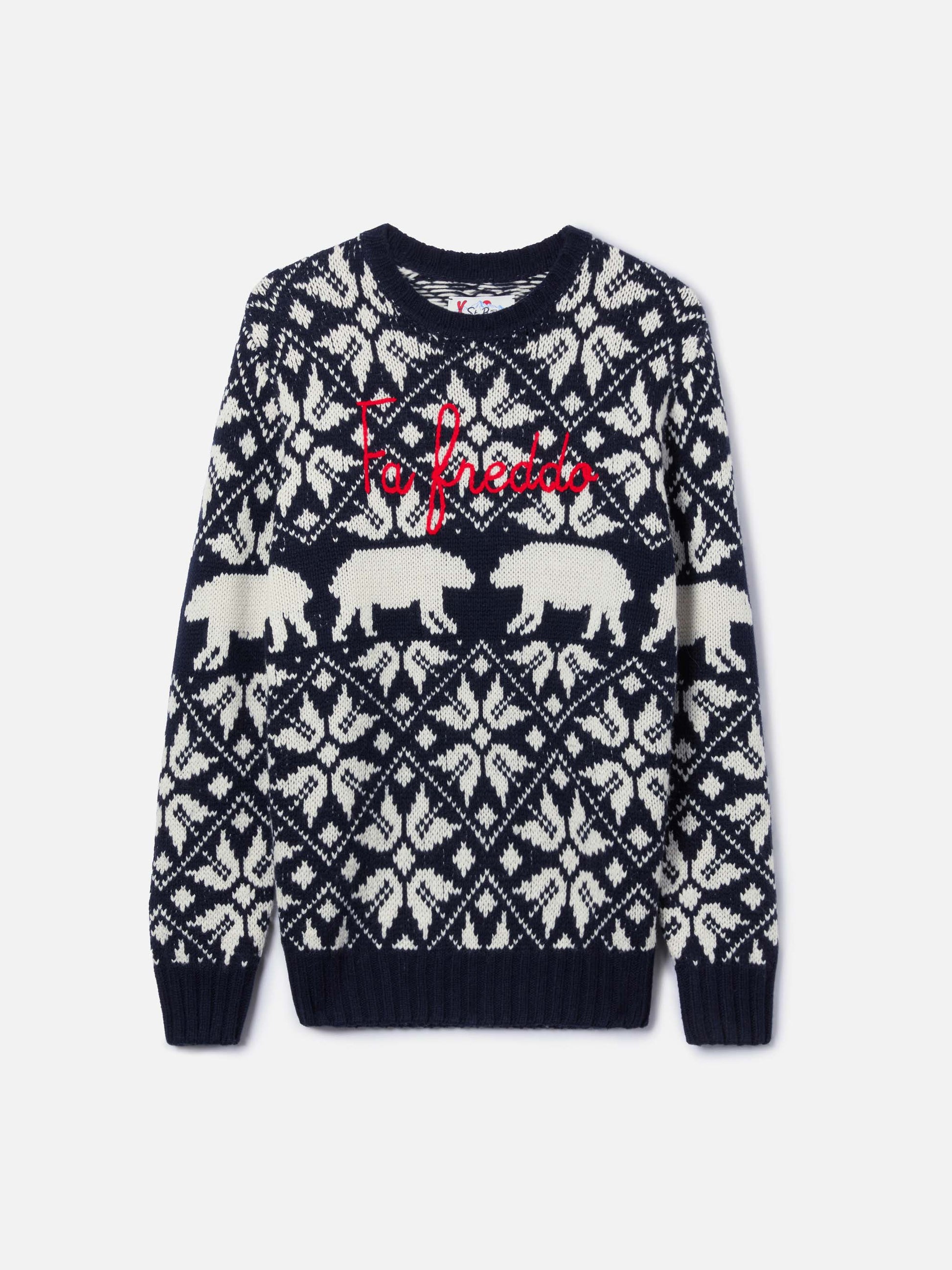 Man sweater Bombardino with norwegian jacquard and Fa Freddo embroidery