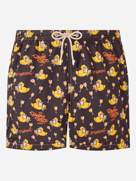 Man lightweight fabric swim-shorts Lighting with Cryptopuppets aperitif print | CRYPTOPUPPETS SPECIAL EDITION