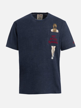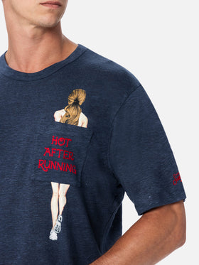 Man linen jersey t-shirt Ecstasea with printed and embroidered pocket