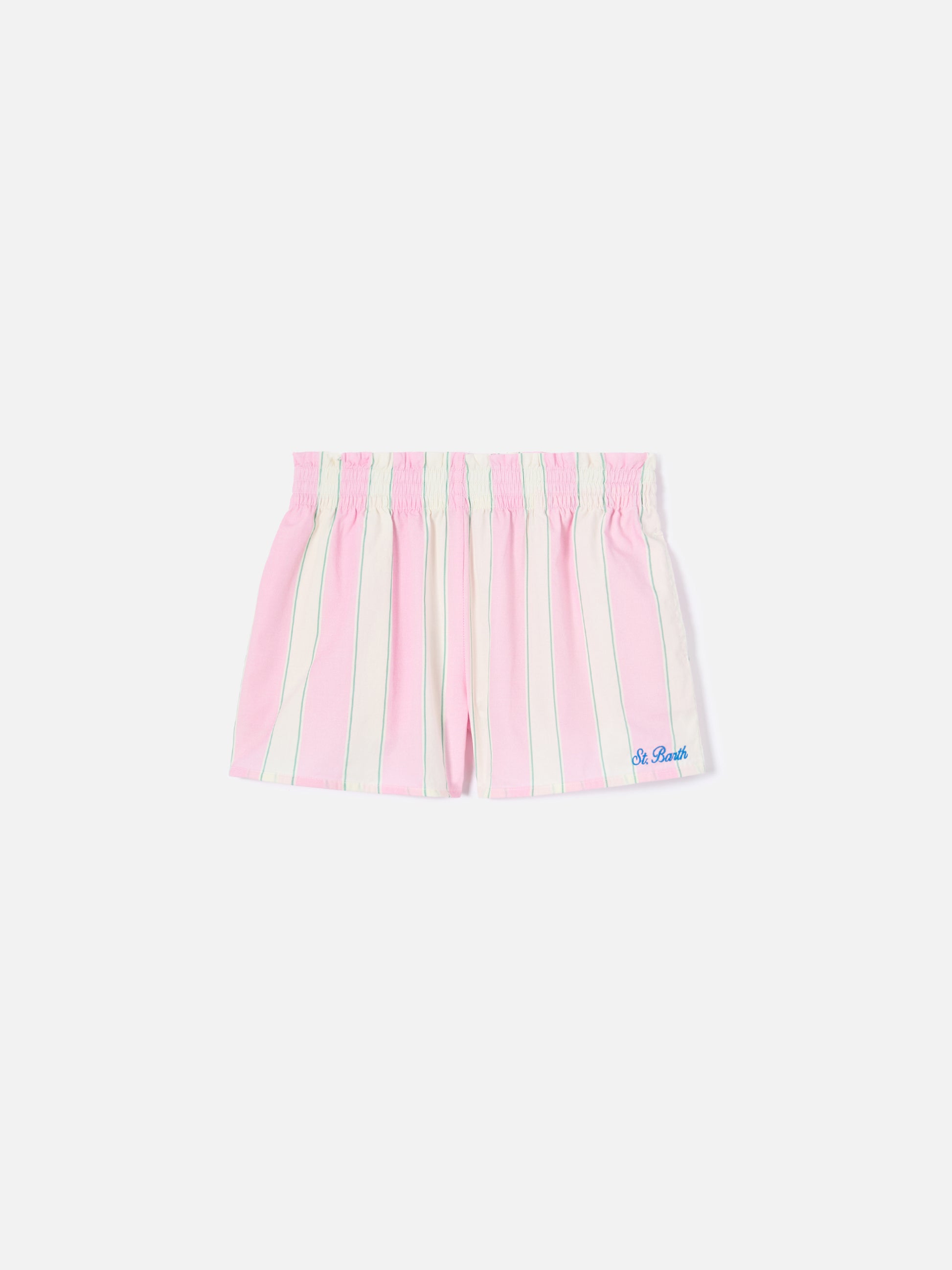 Meave Jr cotton poplin shorts with white, pink and green stripes