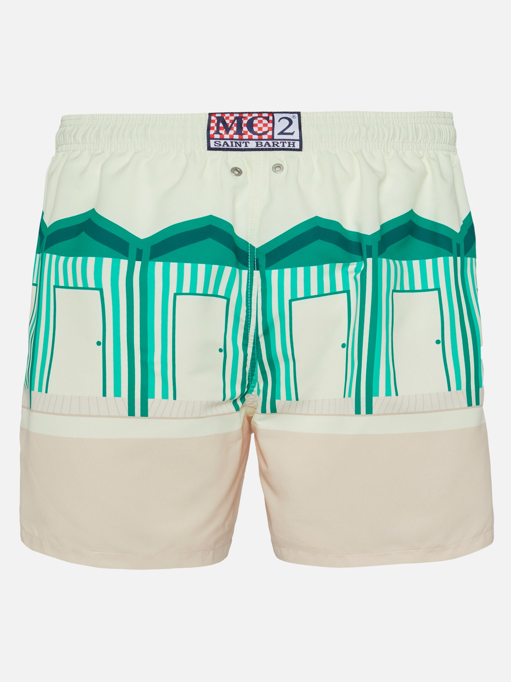 Introducing the Gustavia Placed Print swim-shorts, where innovation meets style through meticulously placed prints for a refined look. A timeless beachwear staple, Gustavia features a classic fit, elasticized waist with drawstring, inner mesh lining for comfort, and back eyelets to prevent ballooning. Crafted from peach-touch fabric, it comes in a variety of colors and patterns. In recent seasons, it has been made with recycled polyester, reflecting our commitment to sustainability.