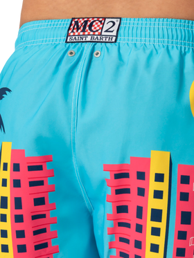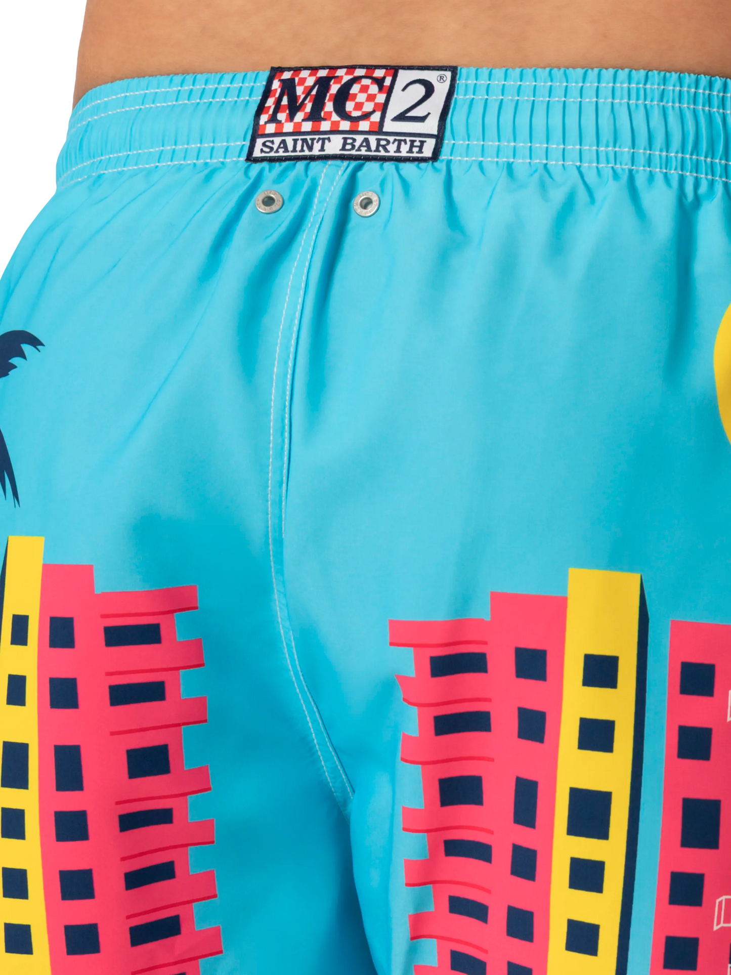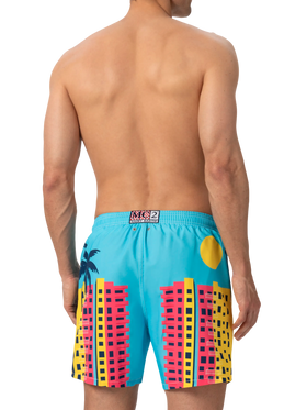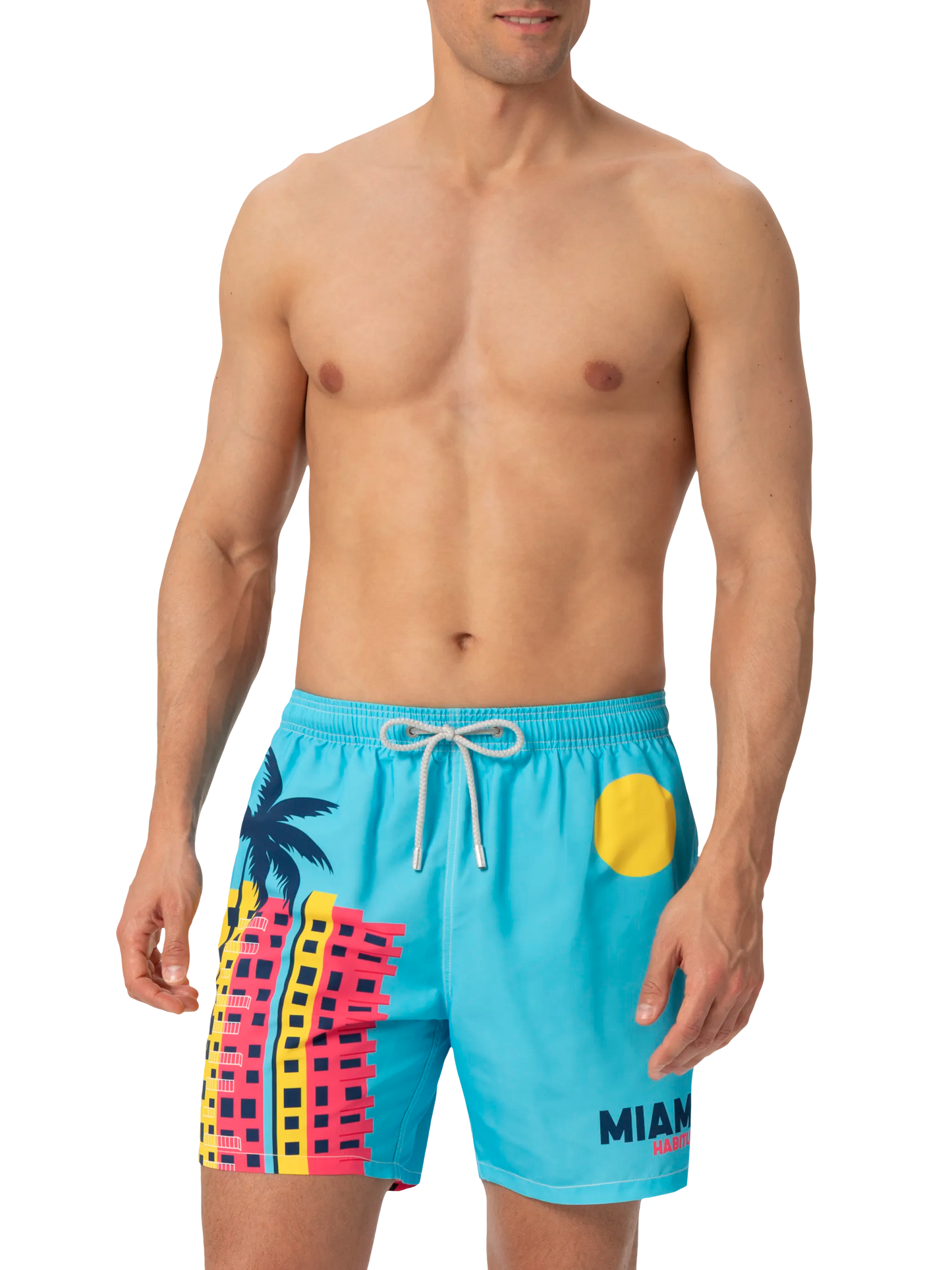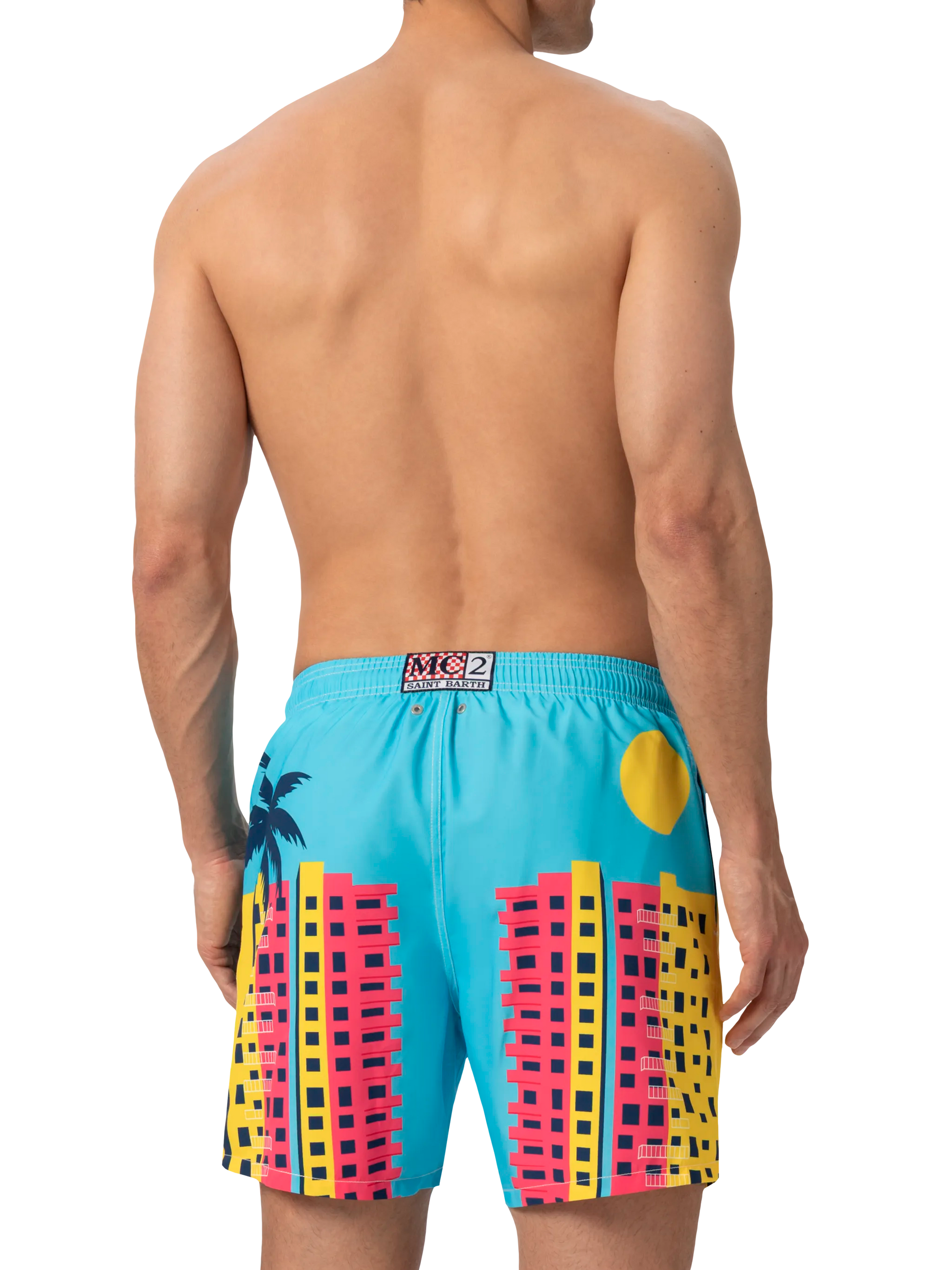 Mid-length Gustavia swim-shorts with Miami postcard placed print - MC2 Saint Barth