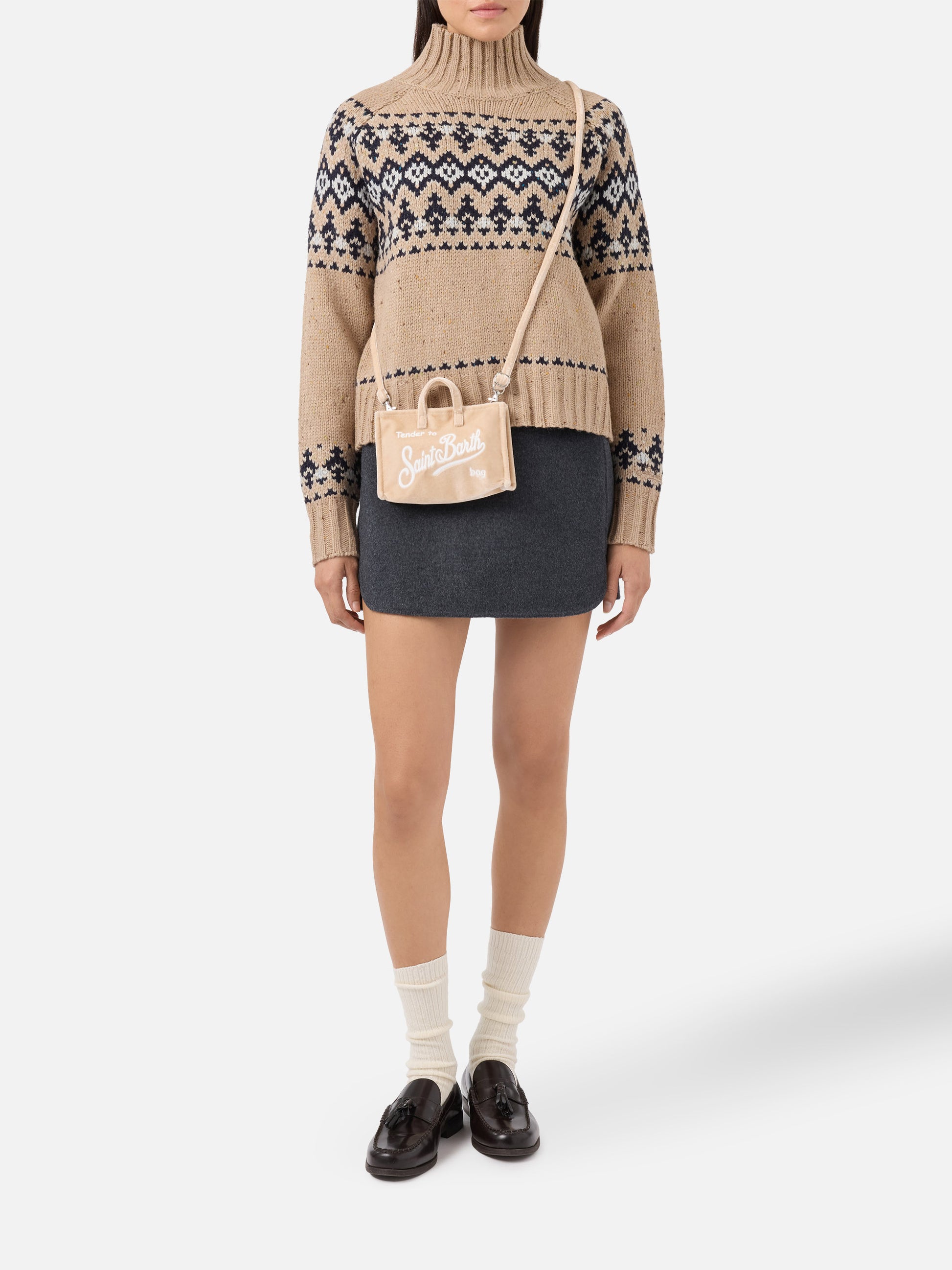 Cambon palazzo trousers in pure wool navy blue high waist with drawstring