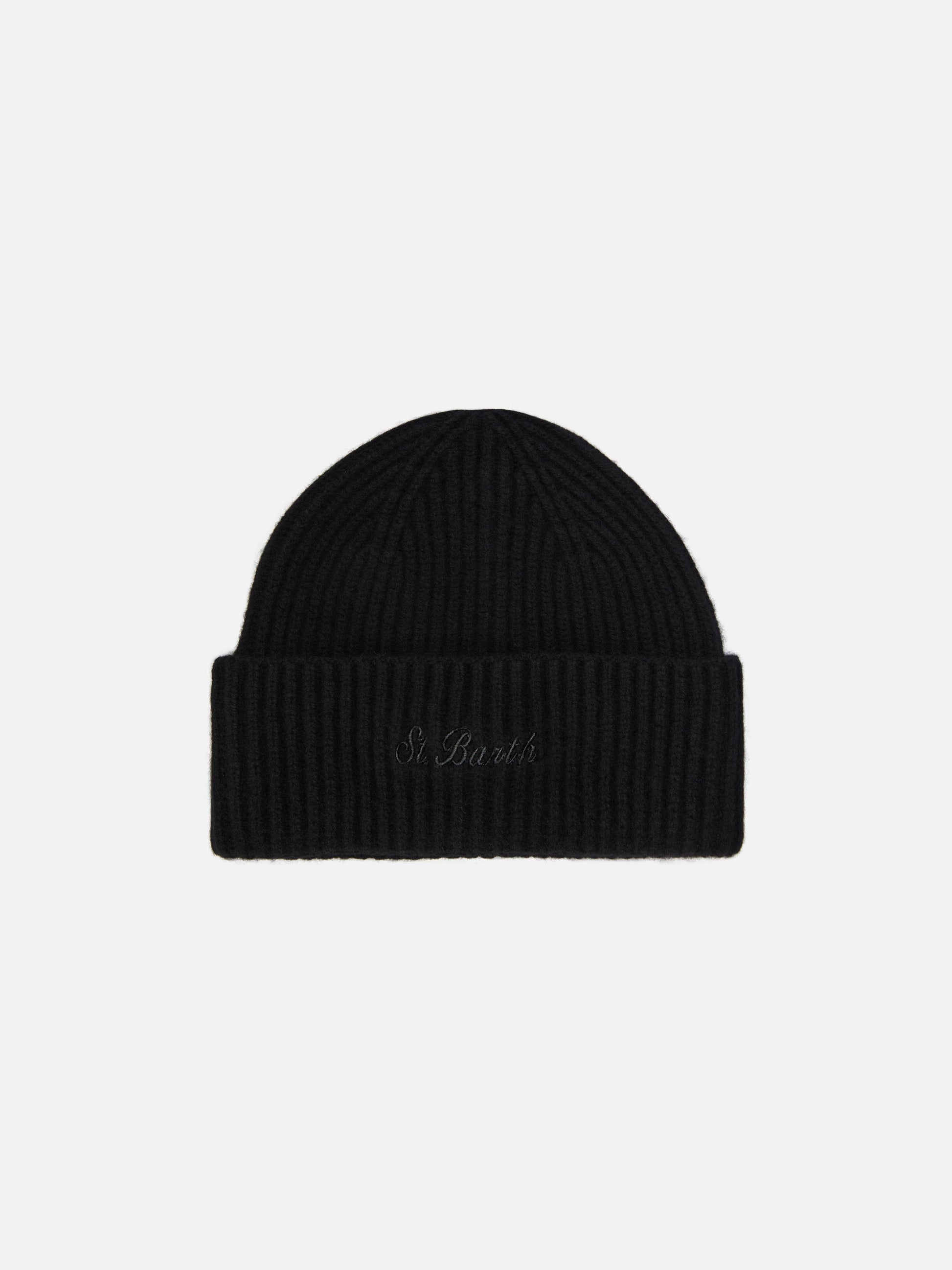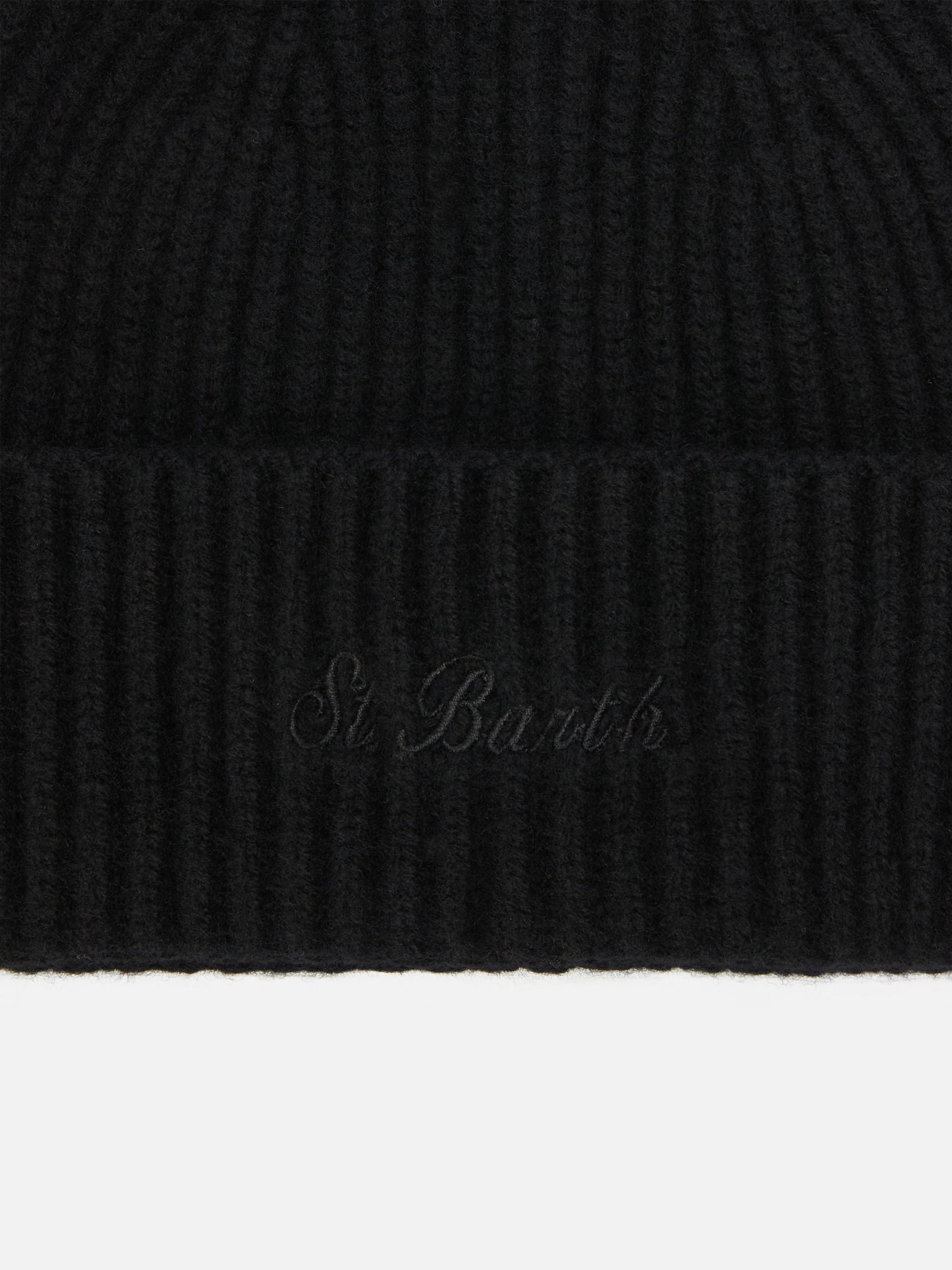 Moss Beanie in black 100% WOOL with St. Barth embroidery