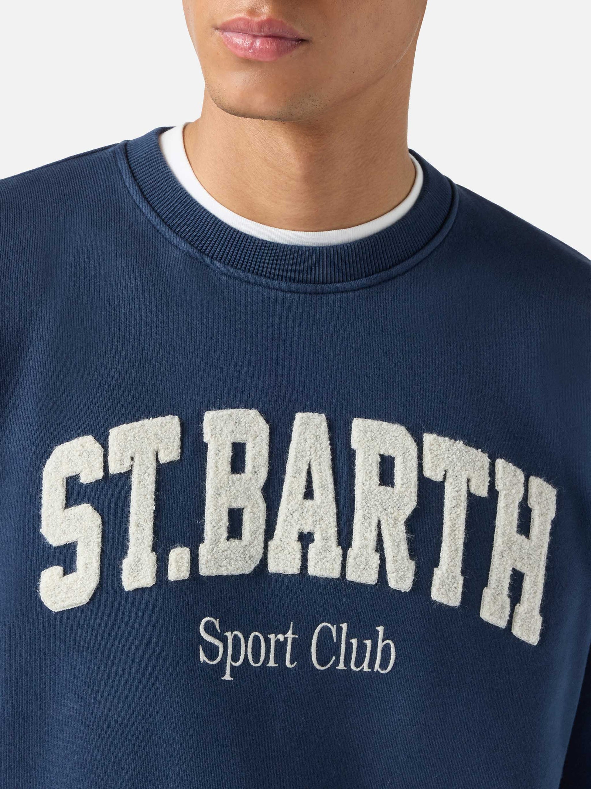 Navy blue Ponza cotton sweatshirt with Sport Club raised terry-effect logo