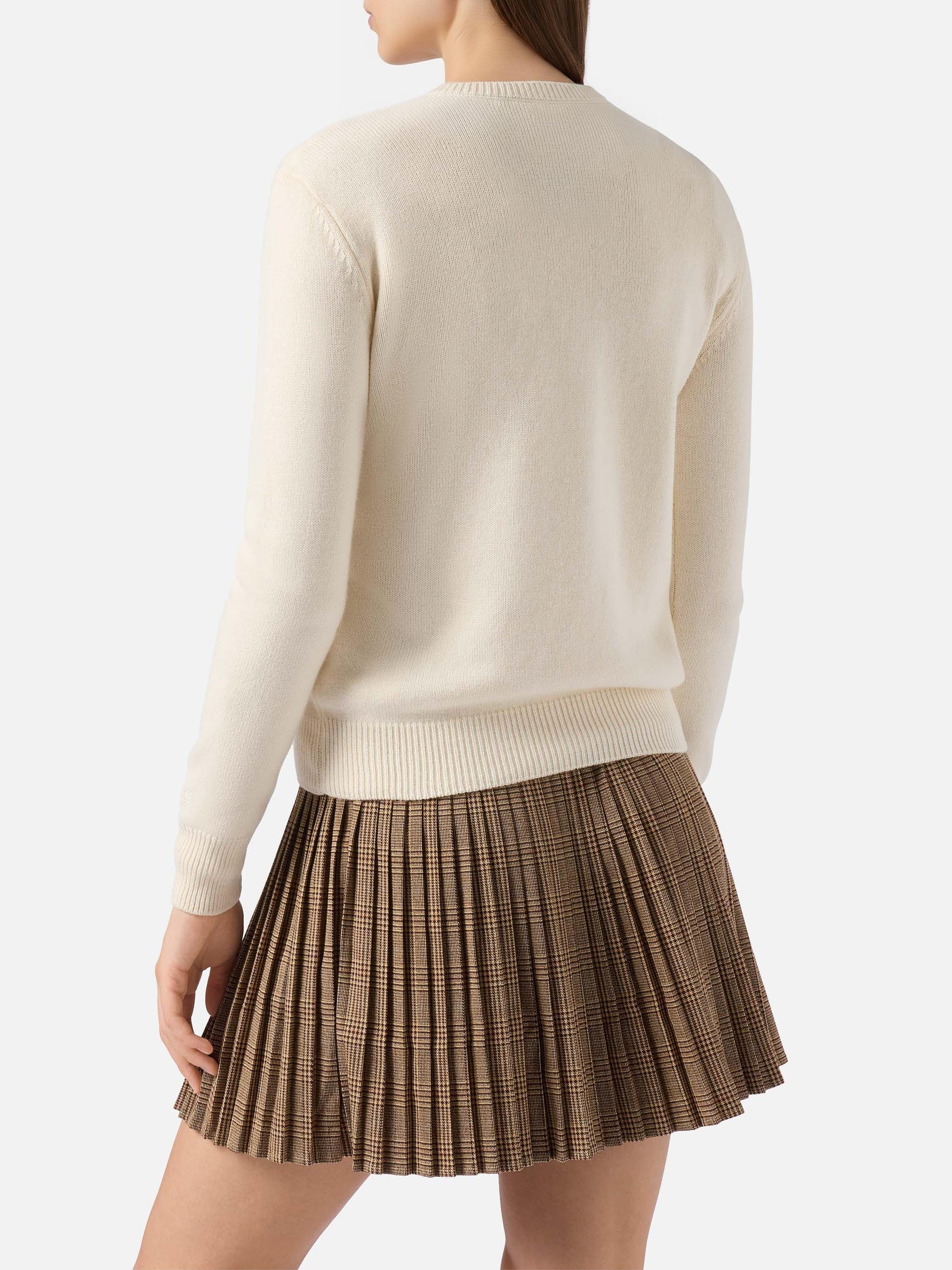 New Queen cashmere-blend sweater in white with Ma cherie embroidery
