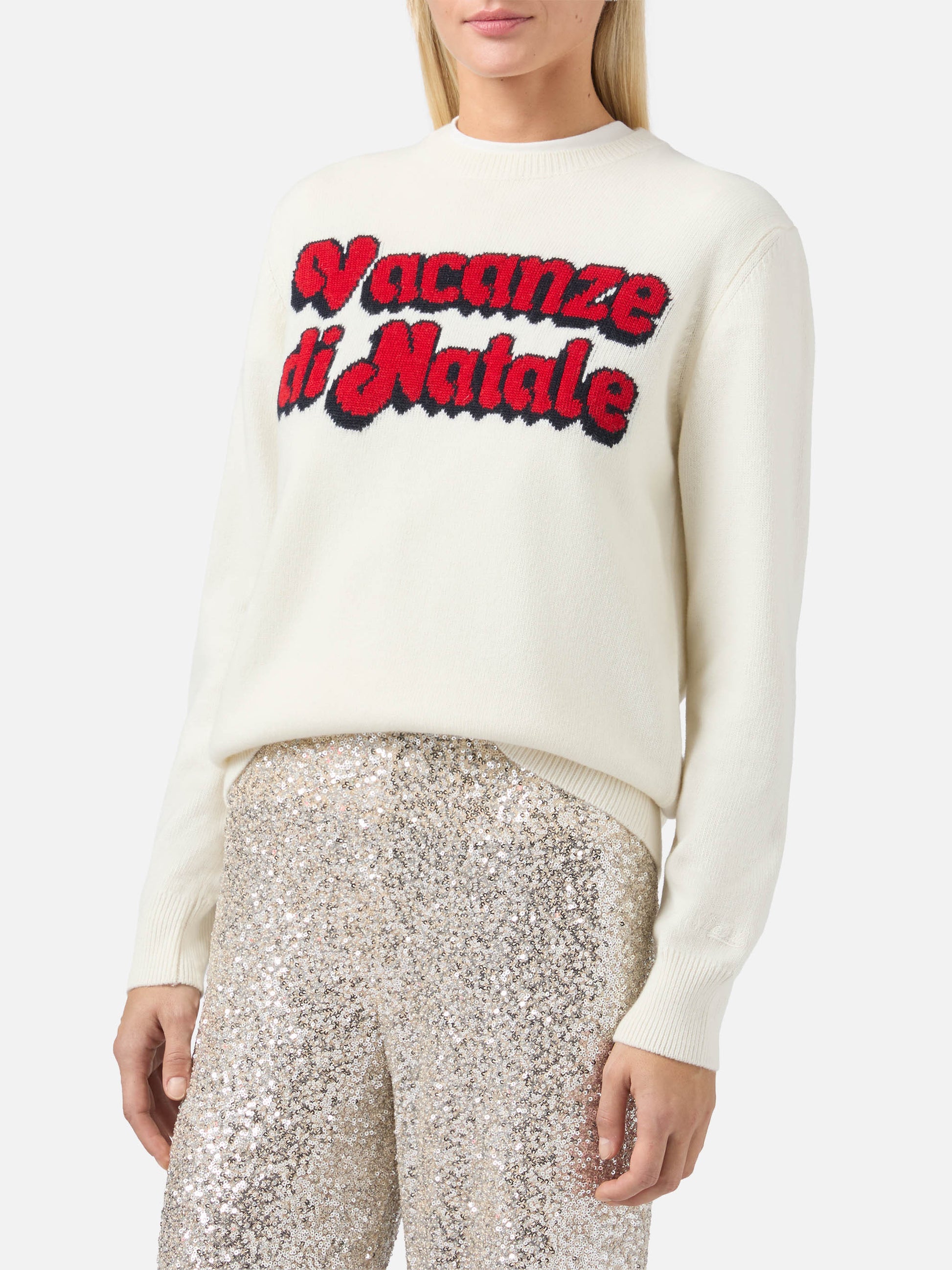 New Queen cashmere-blend crewneck in white with Vacanze di Natale jacquard | VACANZE DI NATALE SPECIAL EDITION