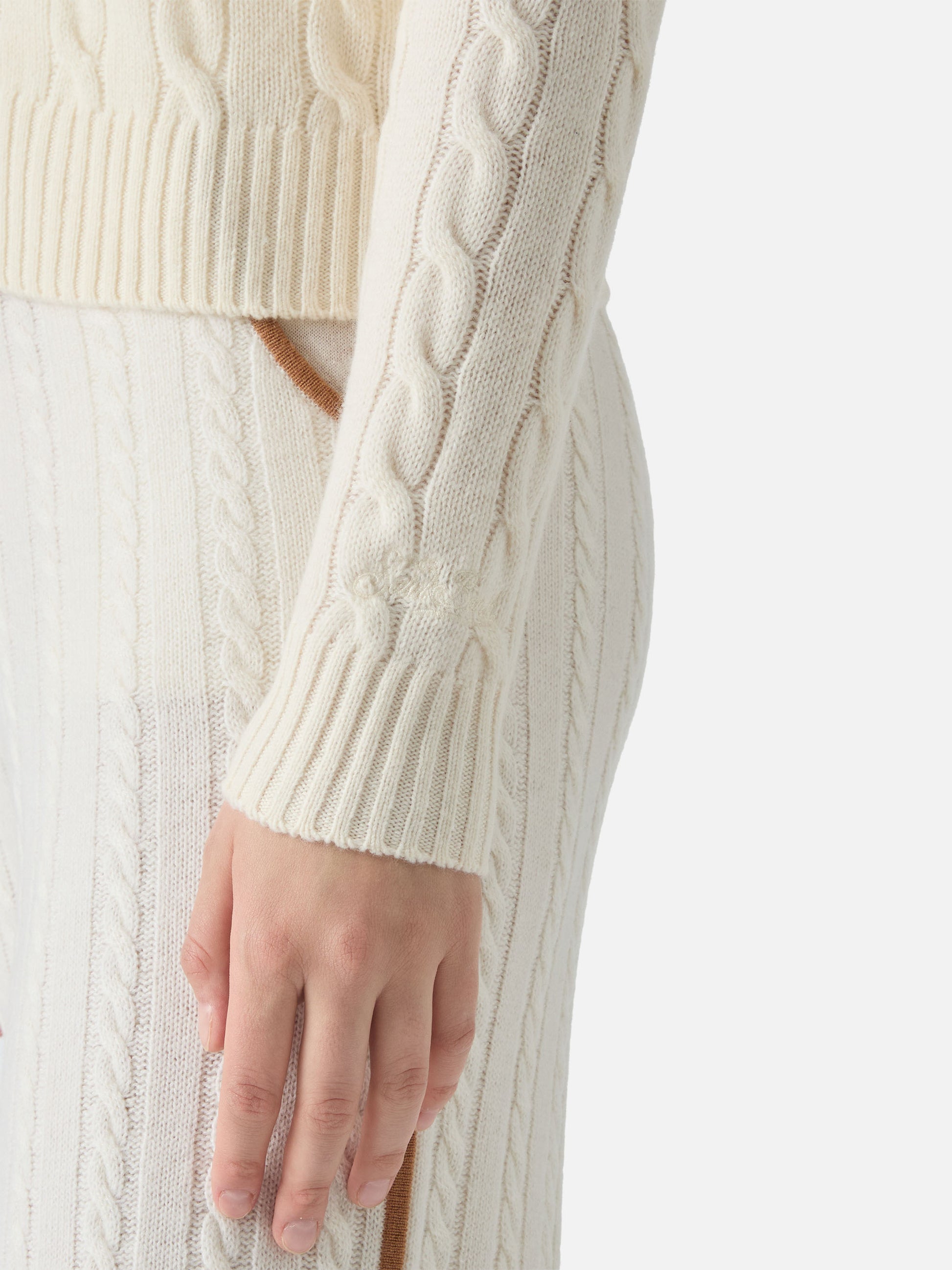 Dinard cable-knit trousers in white wool with St. Barth embroidery