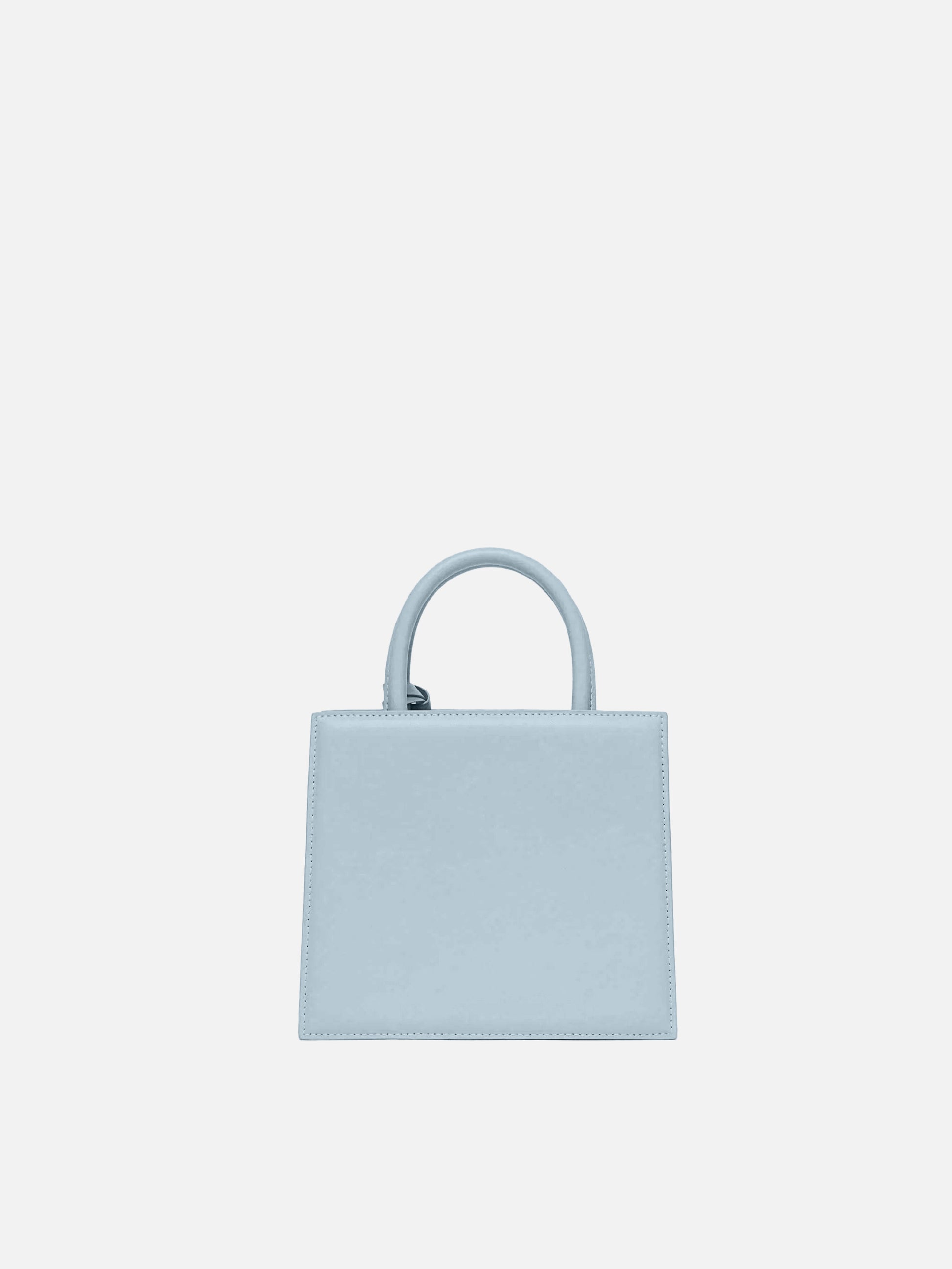 Discover the new Shop Bag: an elegant handbag designed for those who love sophisticated yet functional style. Featuring a structured silhouette and refined details, it's the perfect accessory for any occasion. Bag made of smooth leather Light blue plain color Rigid structure with a squared and elegant silhouette Enhanced by a flap with magnetic closure Front logo in metal with gold galvanic finish Interior lined in cotton, completed by a practical leather pocket to carefully store small items Equipped with a removable shoulder strap for versatile use, both hand-held and over the shoulder A refined leather charm with embossed logo is attached to the handle for a distinctive detail Composition: 100% real leather Dimensions: Height 16 cm, Depth 8 cm, Width 19 cm, Weight 380 g, Shoulder strap length (min) 94 cm, (max) 106 cm, Handle drop: 7,5 cm Care instructions: Keep away from direct light, heat and rain. If it gets wet, dry it immediately with a soft cloth. Stuff the bag with tissue paper to maintain its shape and absorb moisture; store it in its flannel dust bag. Do not carry heavy items that may distort the shape of the bag. Clean with a soft, dry cloth.