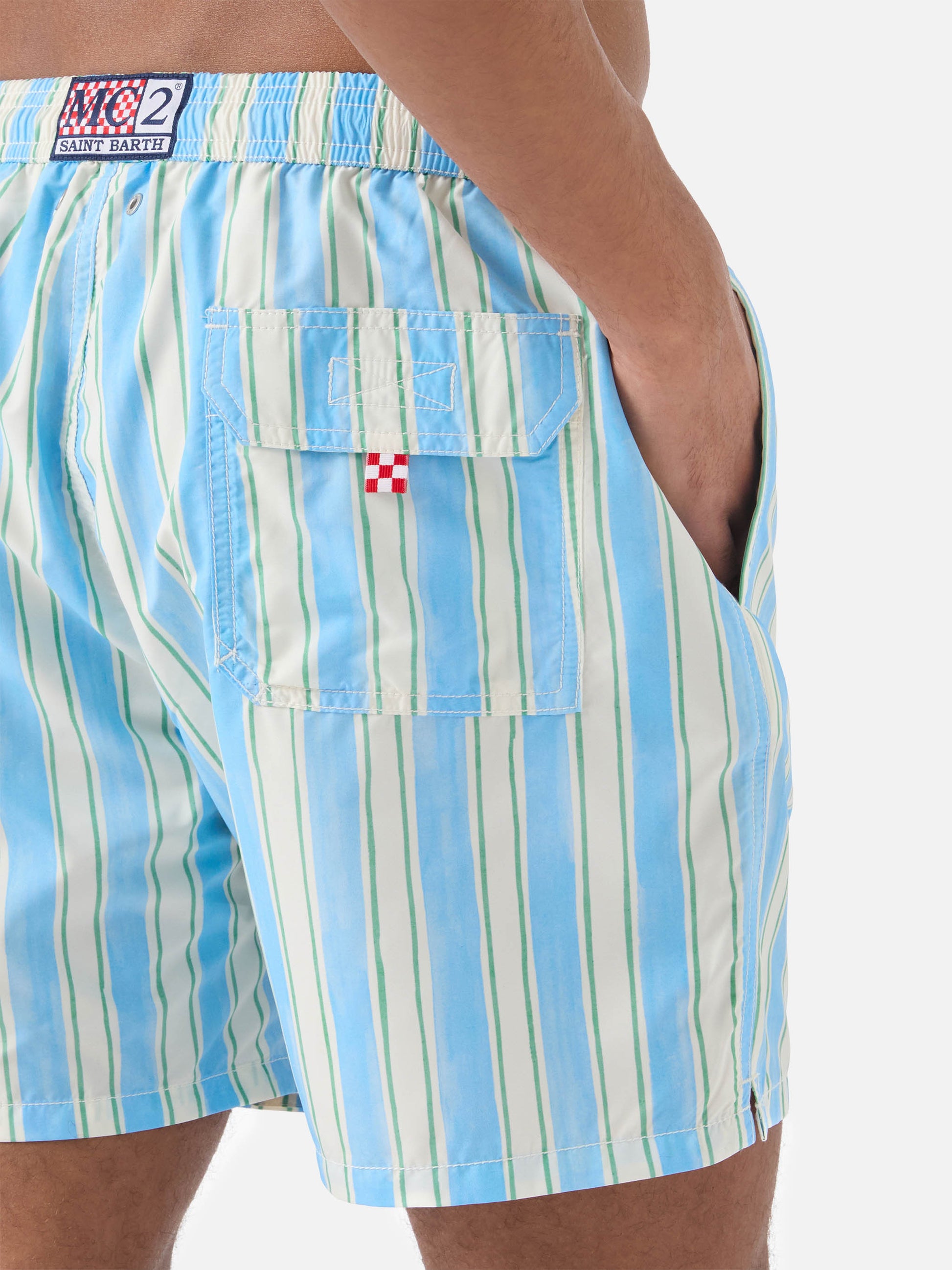 https://it.mc2saintbarth.com/en/products/syros-swim-shorts-with-light-blue-striped-pattern-and-logo-embroidery10775379771738Syros swim shorts with light blue striped pattern and logo embroidery119,00https:files/UID_SYR000100930L-MAN-SWIMSHORT-WHITE-MC2-MC2_1.jpghttps:files/UID_SYR000100930L-MAN-SWIMSHORT-WHITE-MC2-MC2_1.jpgEUROutOfStockSWIMSHORT650948215130All Products - Only Man649134276954AVADA - Best Sellers673887977818Dots, Stripes & Checks Swim Shorts280043487416Father & Son Swimwear288251543736Man - View All Swimwear635400520026Man embroidered swim shorts674126365018Man striped patterns674079768922Men Maxi Print Swim Shorts673877852506Men Print & Graphic Swim Shorts673877819738Men Quick Dry Swim Shorts673877360986Men Swim Shorts672324452698New In - Man603371077978Swimshorts All626723225946The Quick Dry Fabric - Man654689960282UpSelling_Man_Swimshorts279223304376View All Macro Printed Swim ShortsThe Syros swim shorts are crafted from breathable quick-dry fabric designed to provide comfort and freedom of movement. The striped pattern in light blue, white and green gives the style a fresh and summery look, while the logo embroidery adds a distinctive detail. The elasticated waistband with drawstring allows for an adjustable fit, while functional elements such as side pockets, an additional zip pocket, an internal small pocket and a back pocket with flap and velcro closure ensure practicality. The antibacterial stretch inner mesh provides comfort and support. The mid-length cut and regular fit complete the design, part of the family capsule.