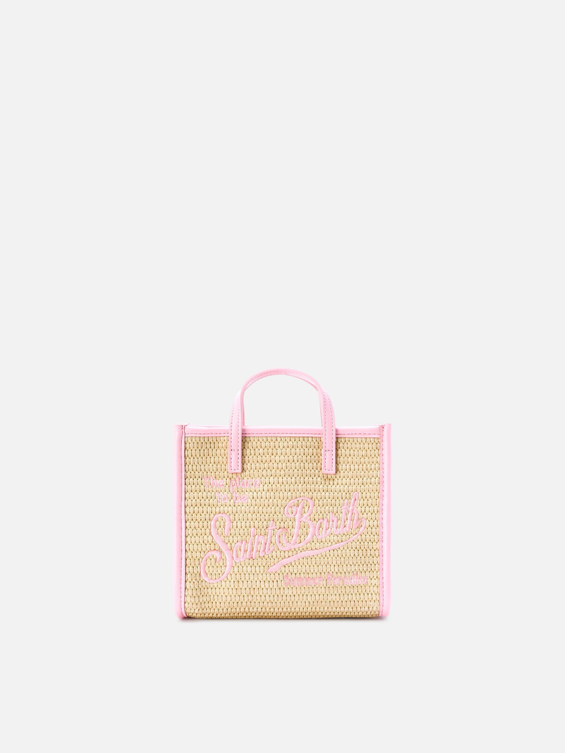 Vivian mini straw effect bag with pink embroidered logo