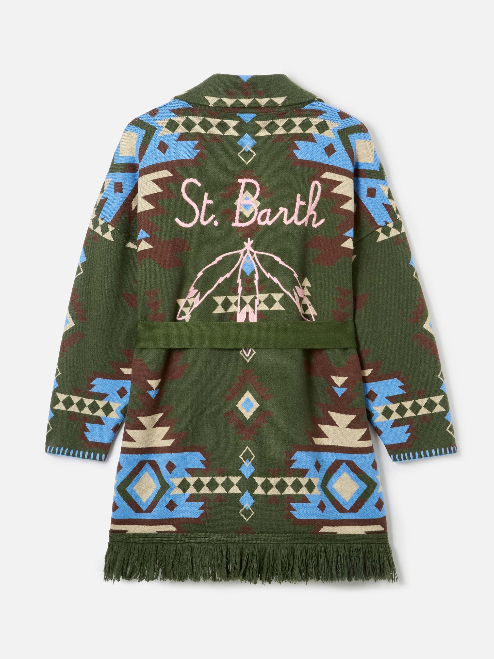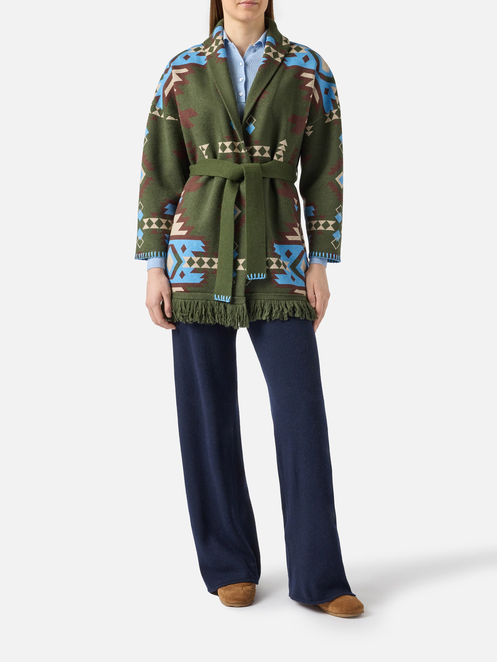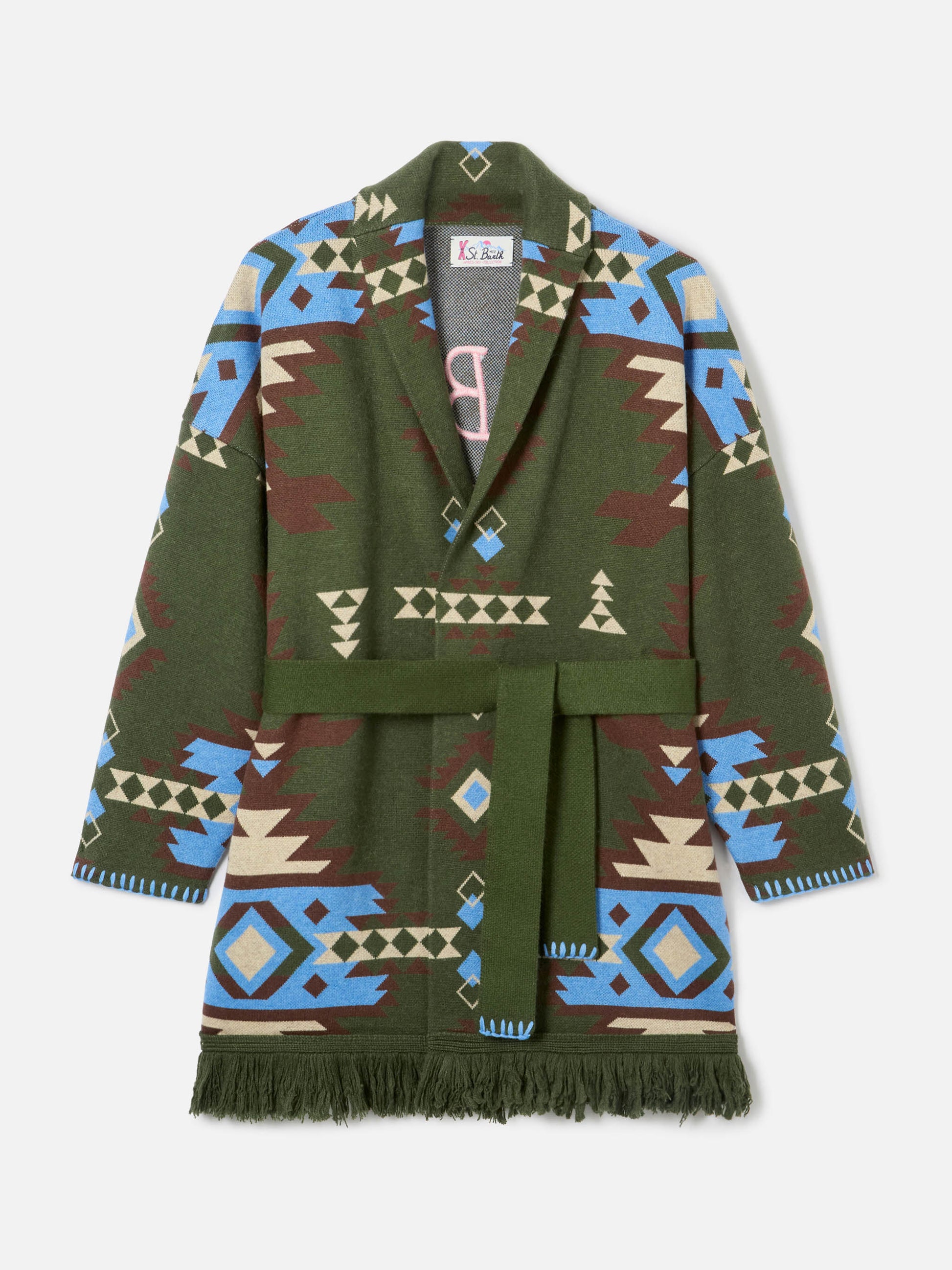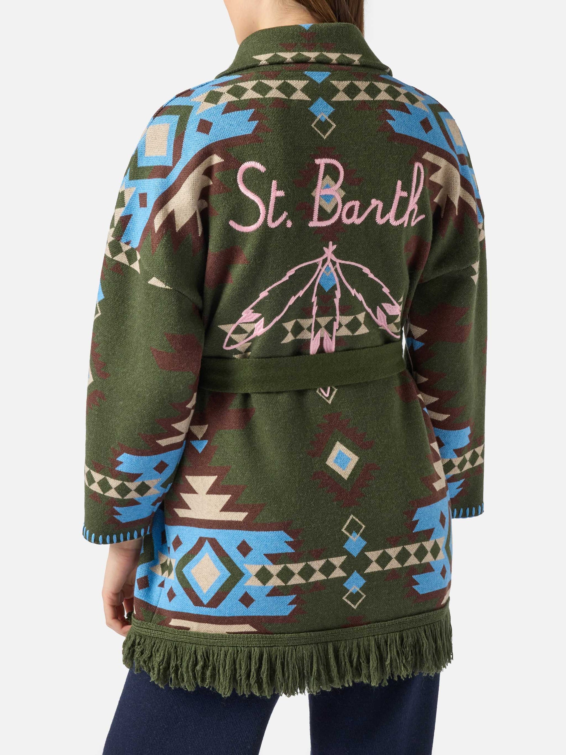 Blended cardigan Cristabel with belt and ethnic print