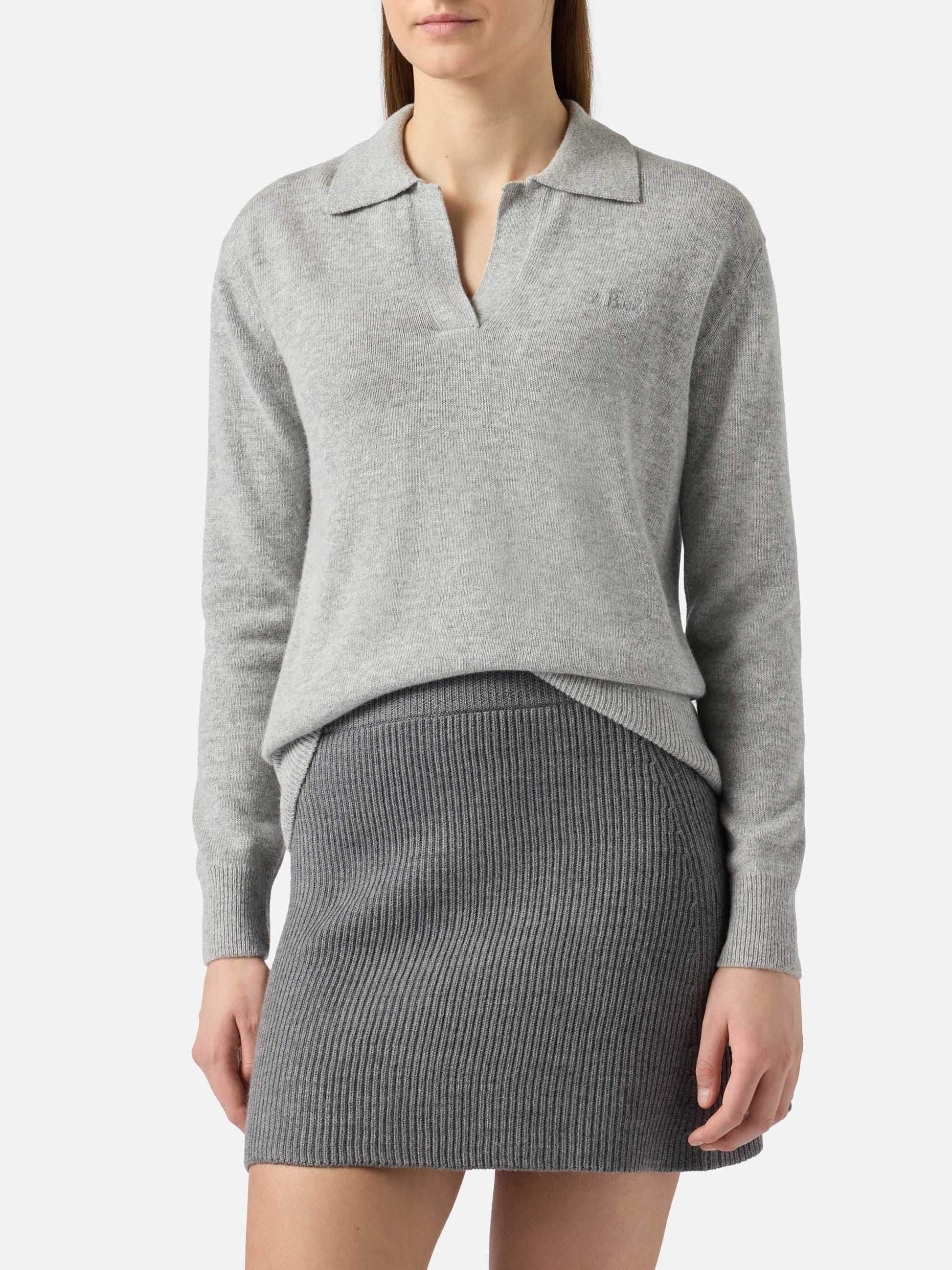 Woman mélange grey sweater Eze with polo collar