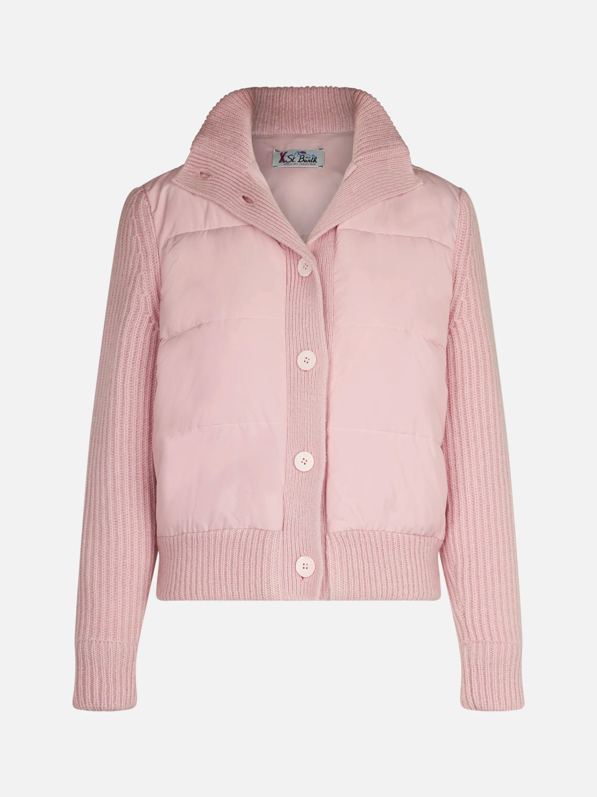 Woman padded jacket with knitted sleeves