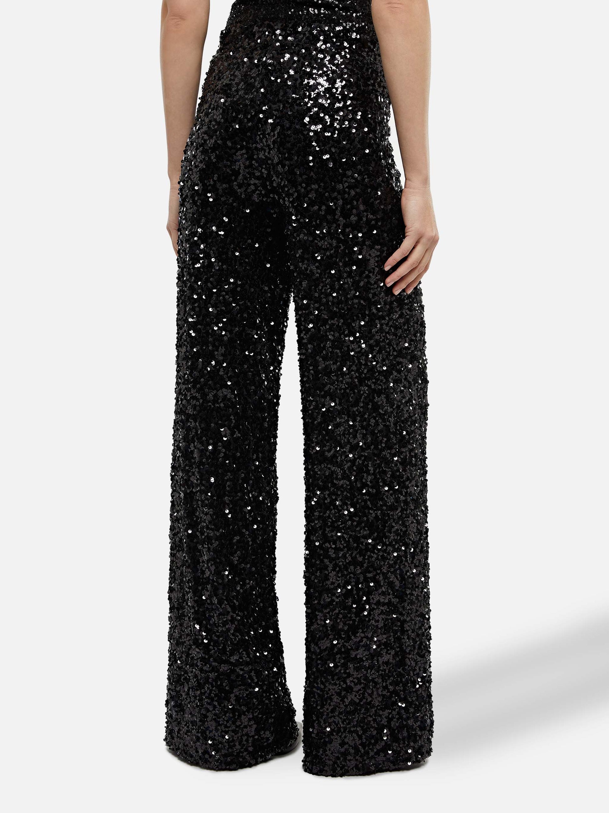 Woman wide-leg trousers Lucette with black sequins