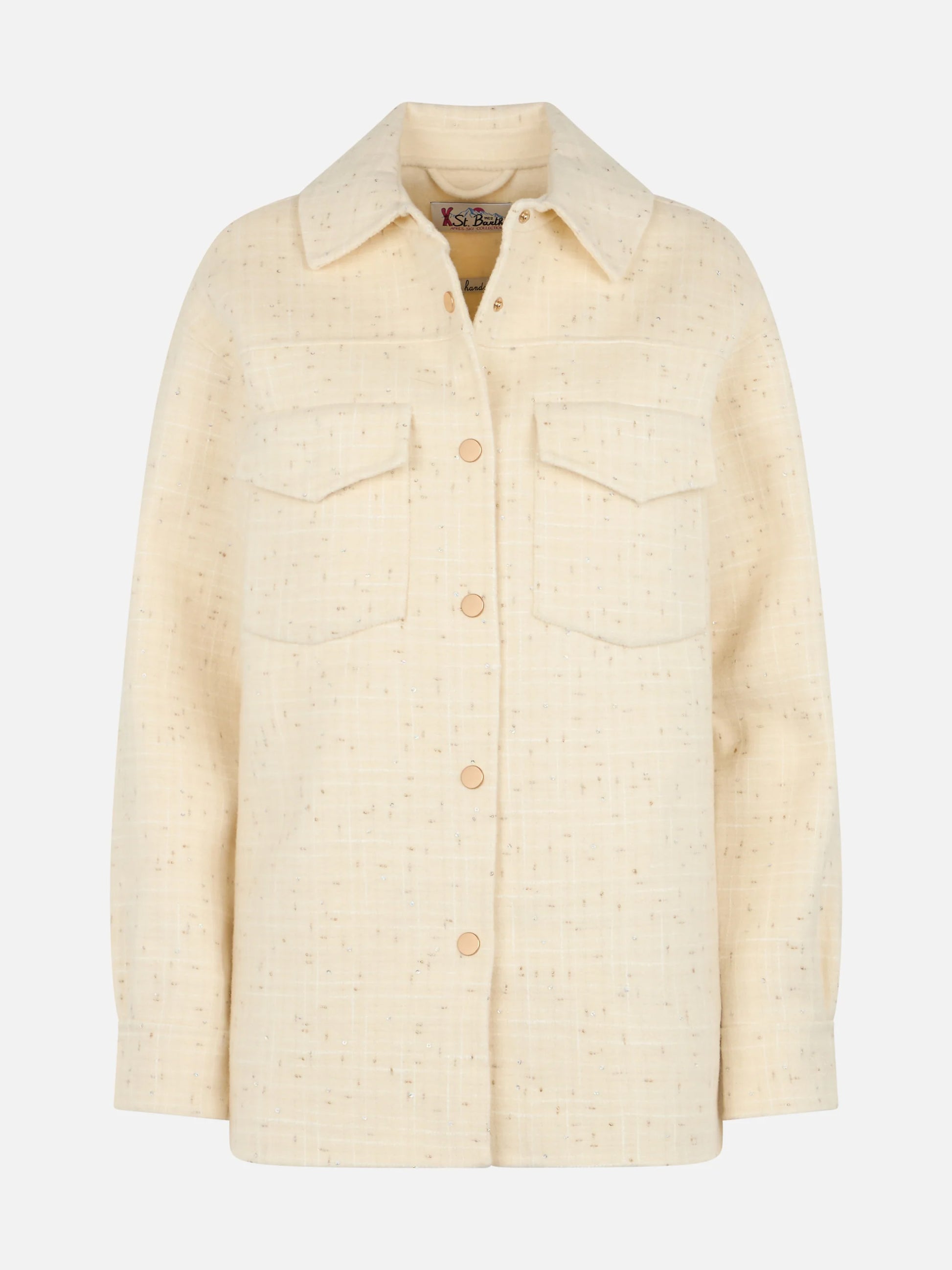 Malmo cable-knit cashmere-blend sweater in white with Saint Barth jacquard on the sleeves