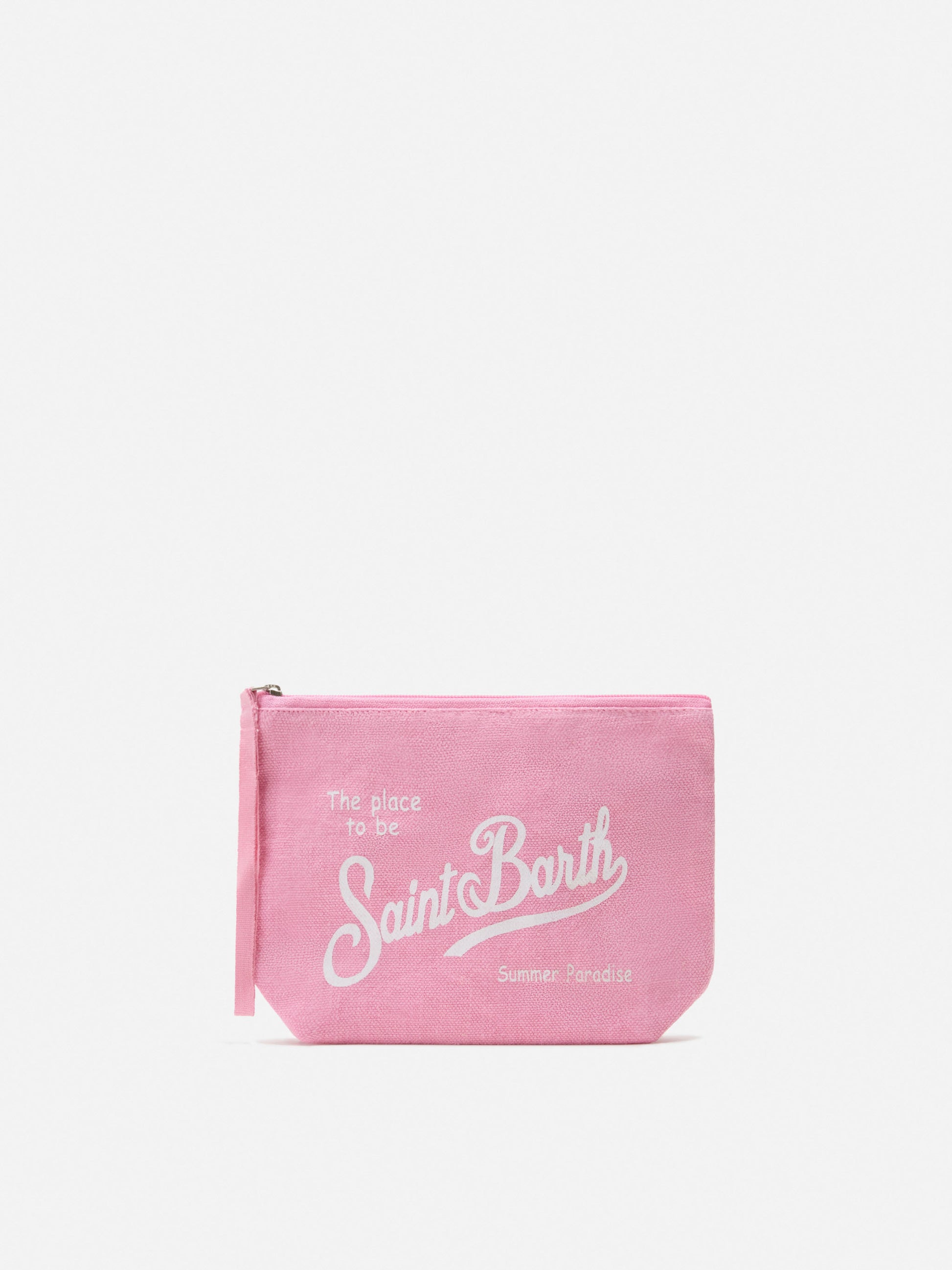 Pochette Aline in lino rosa tinta unita