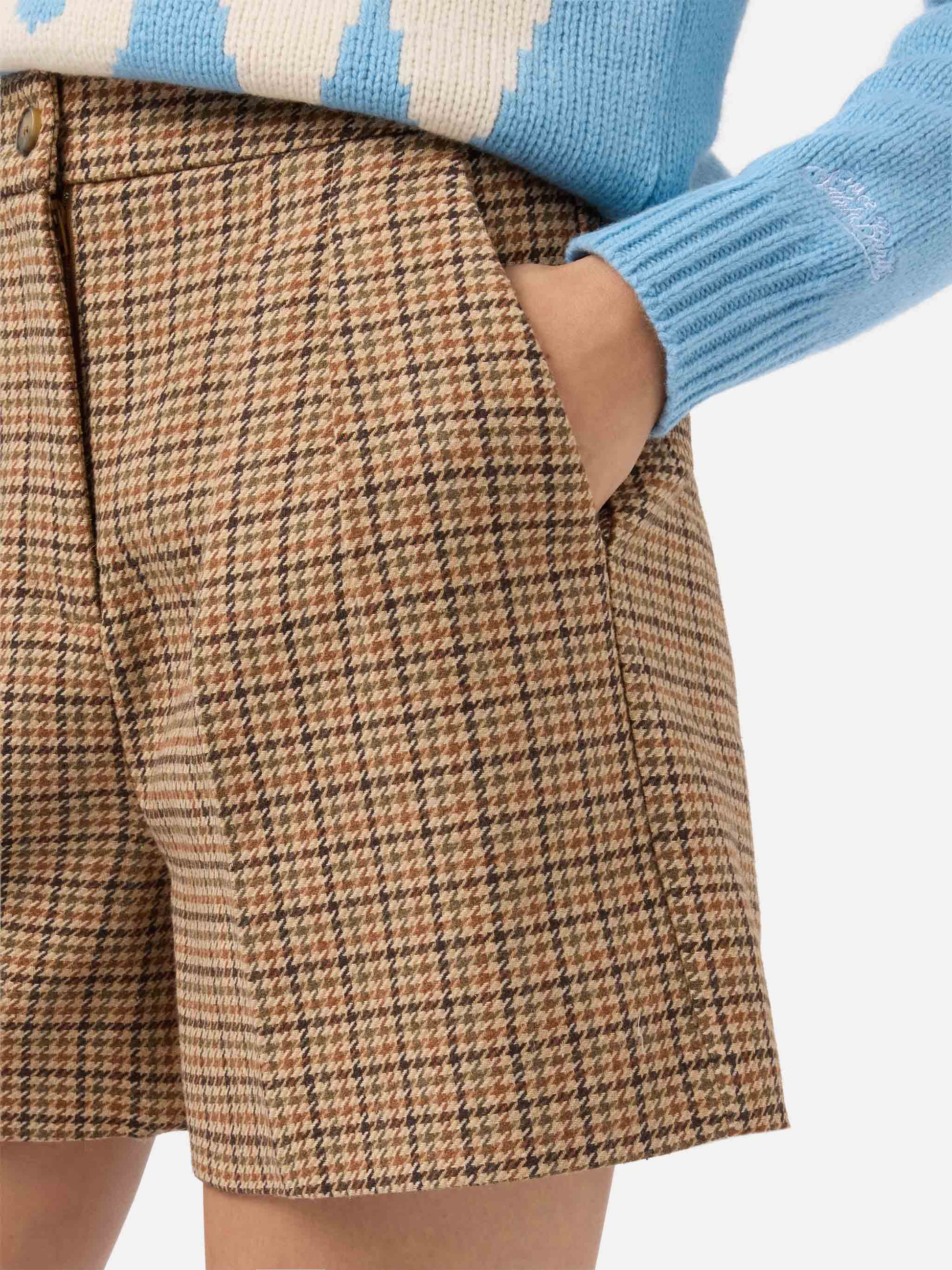 Shorts Aya in tessuto pied de poule con doppia piega