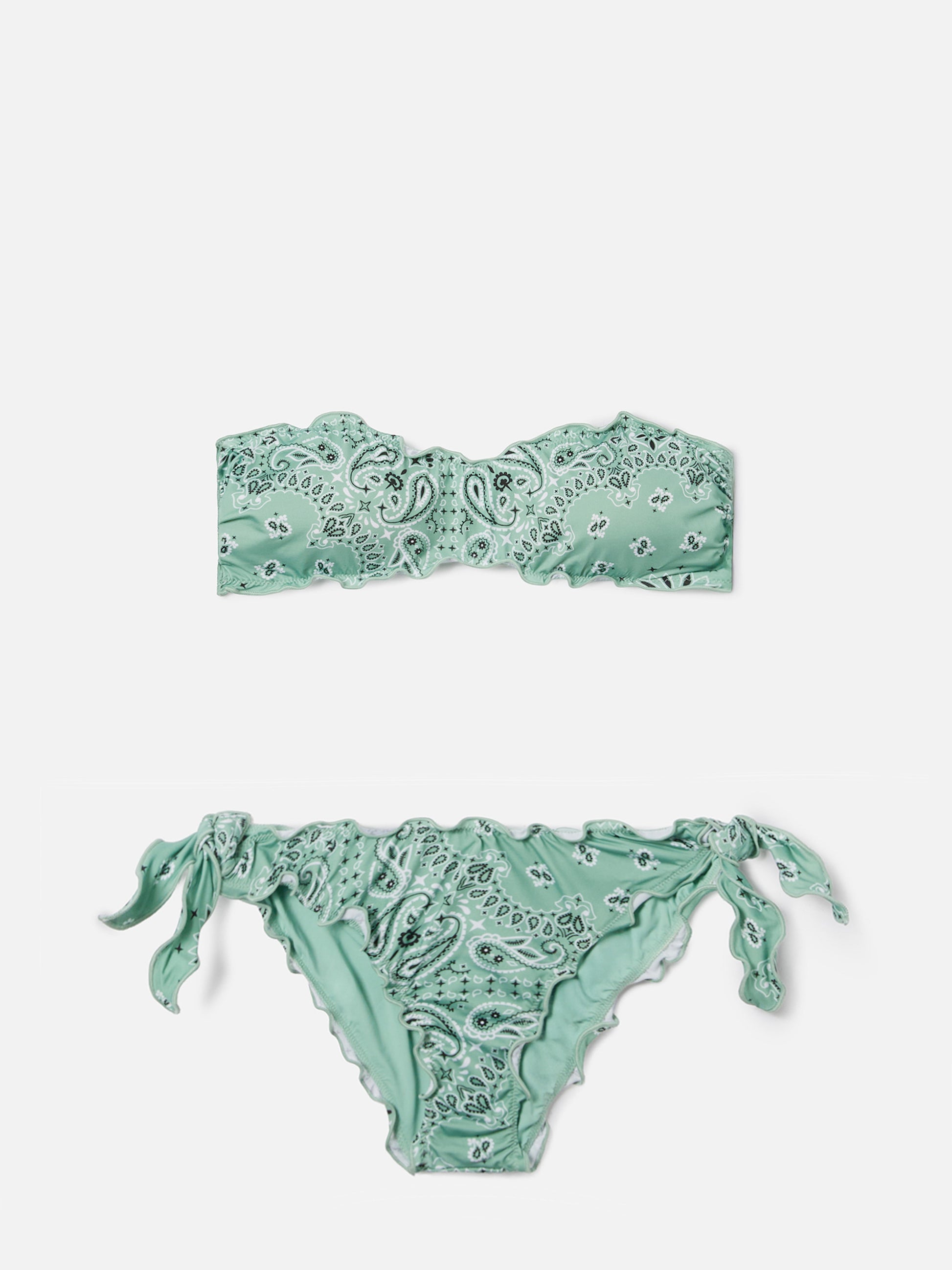 Bikini Myranda a fascia con stampa bandana verde salvia