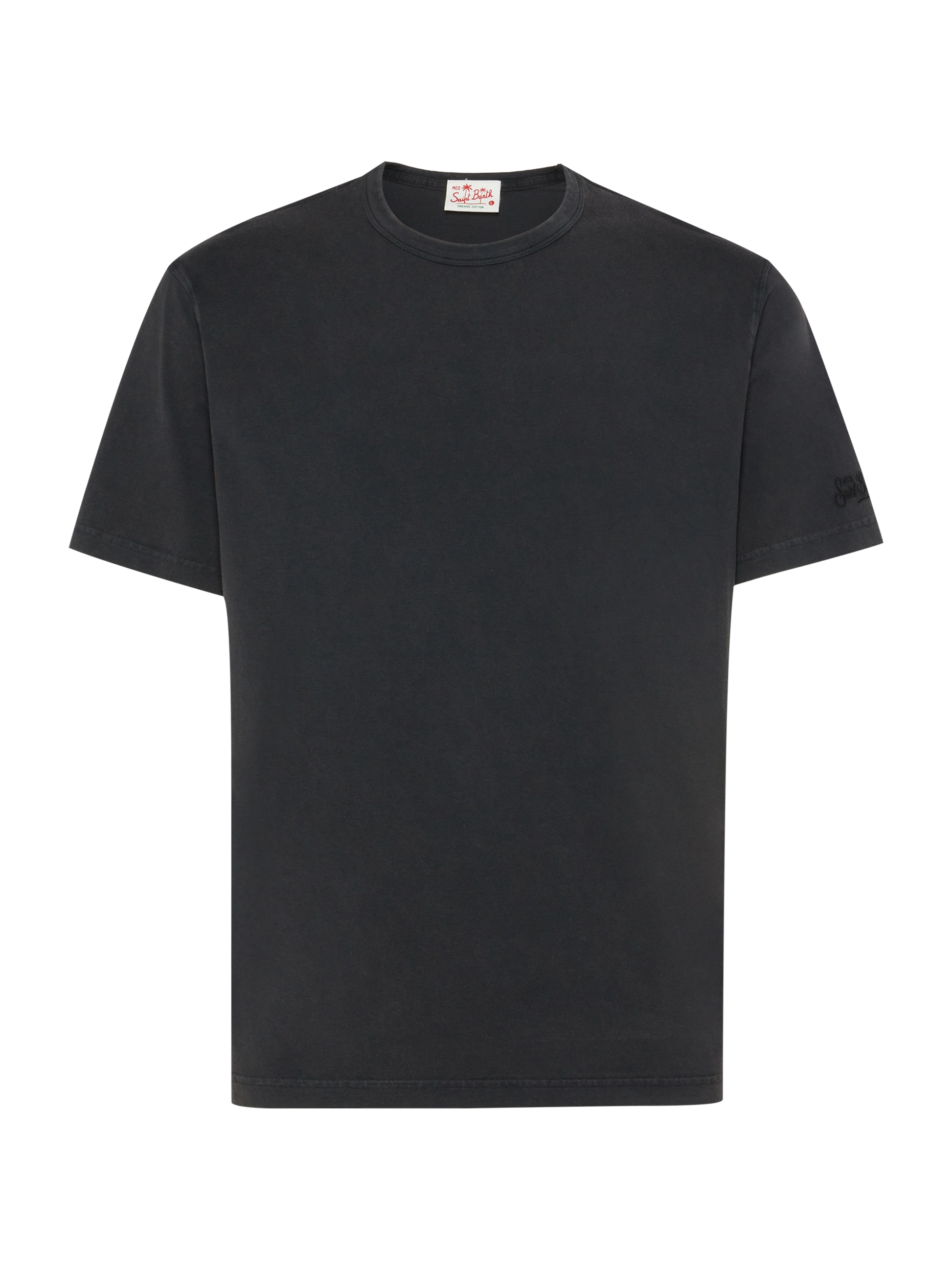 Tshirt Dover in jersey di cotone biologico nero con ricamo St. Barth