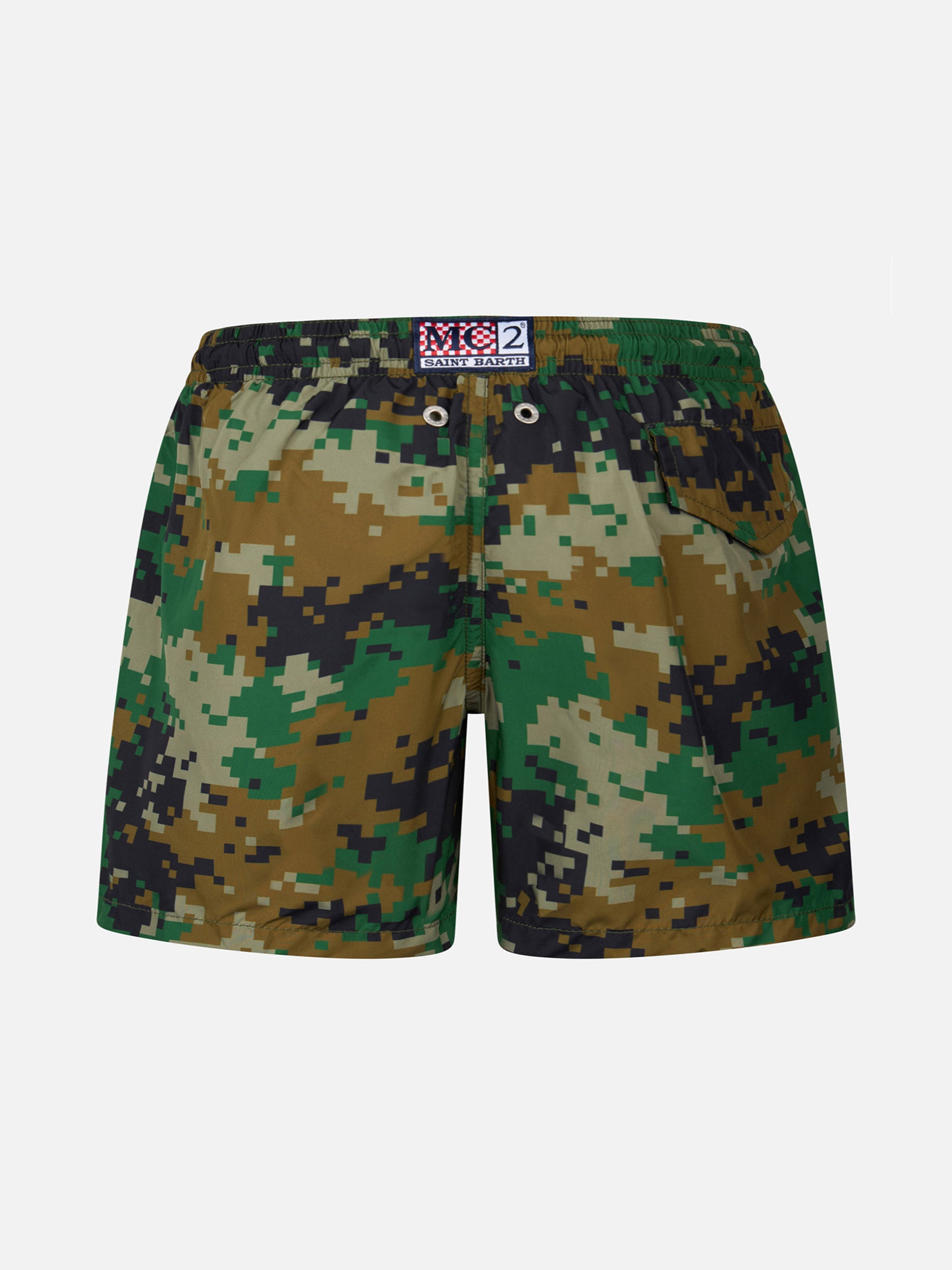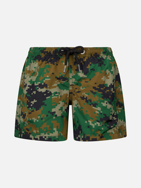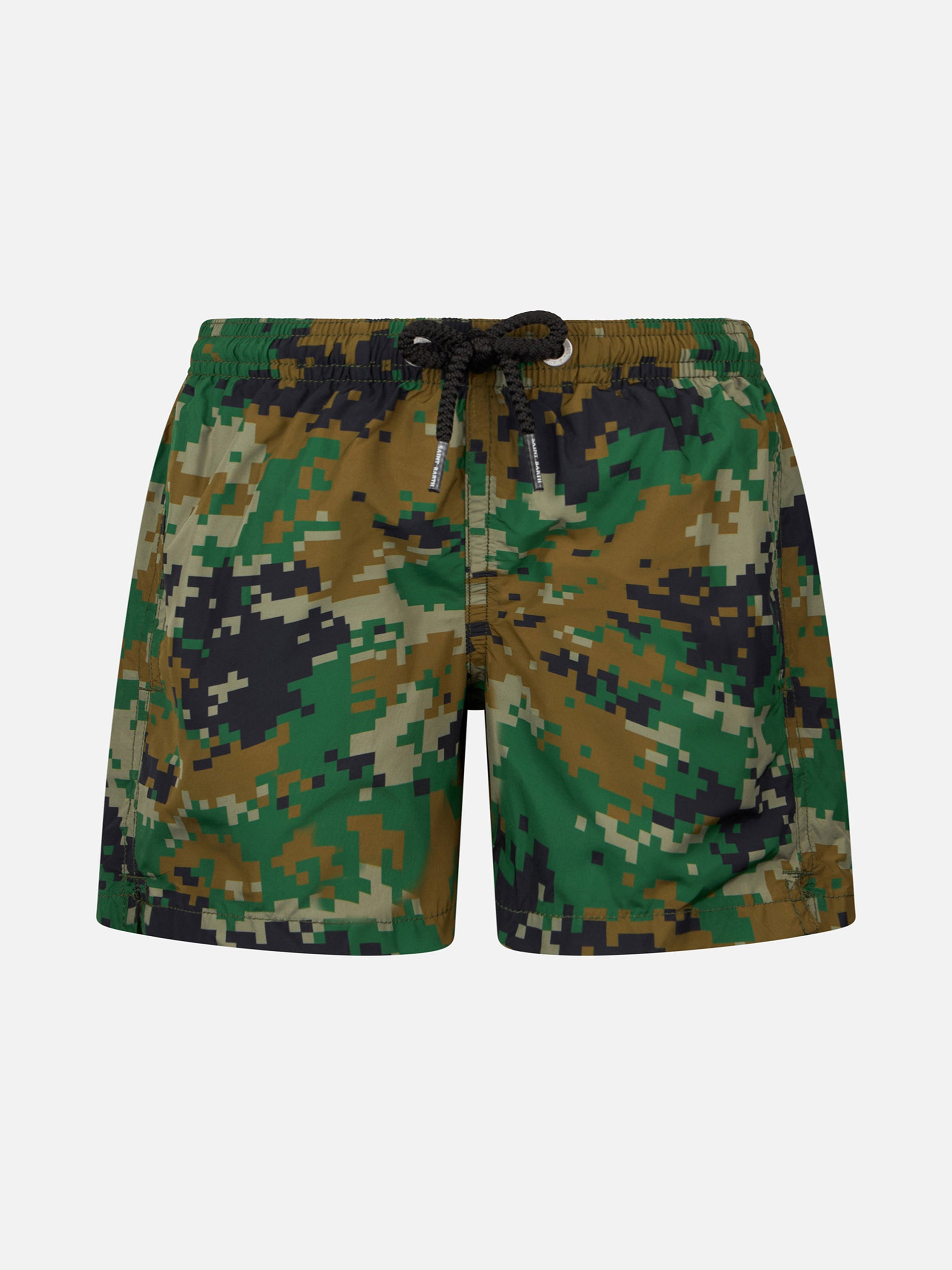 Costume da bagno da bambino in tessuto leggero Jean Lighting con stampa pixel camouflage