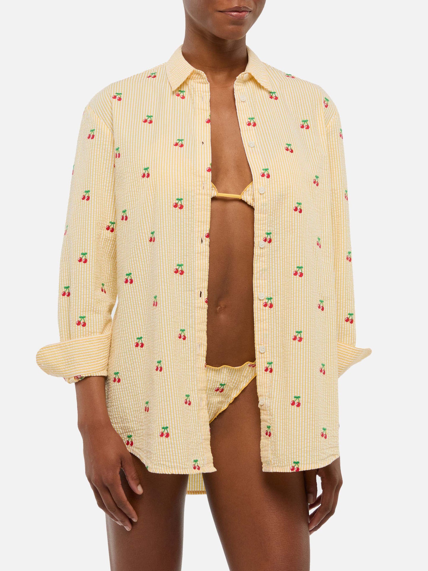 Brigitte camicia in seersucker a righe con ricamo Saint Barth