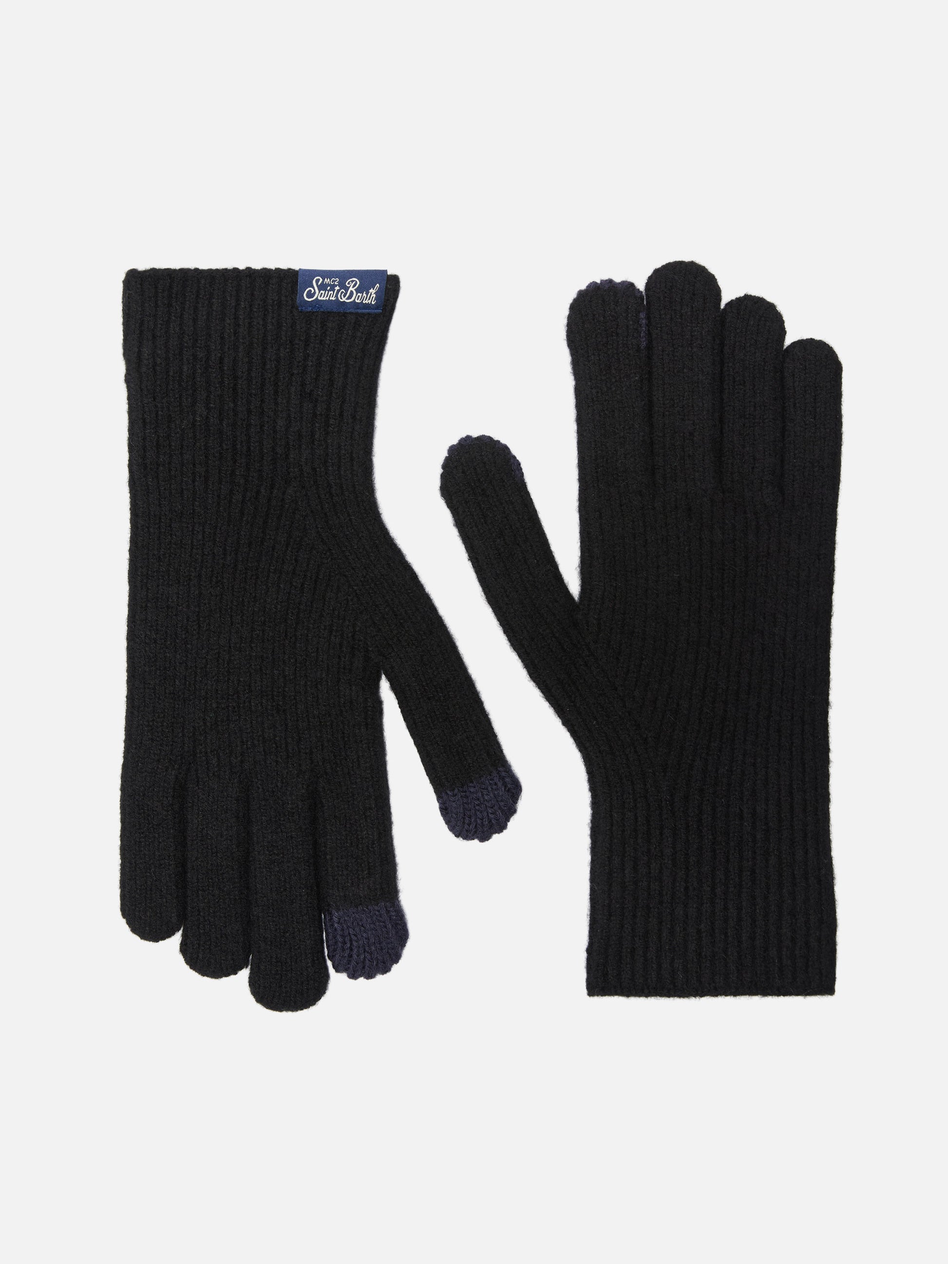Guanti elasticizzati Brixton a coste in misto cashmere nero