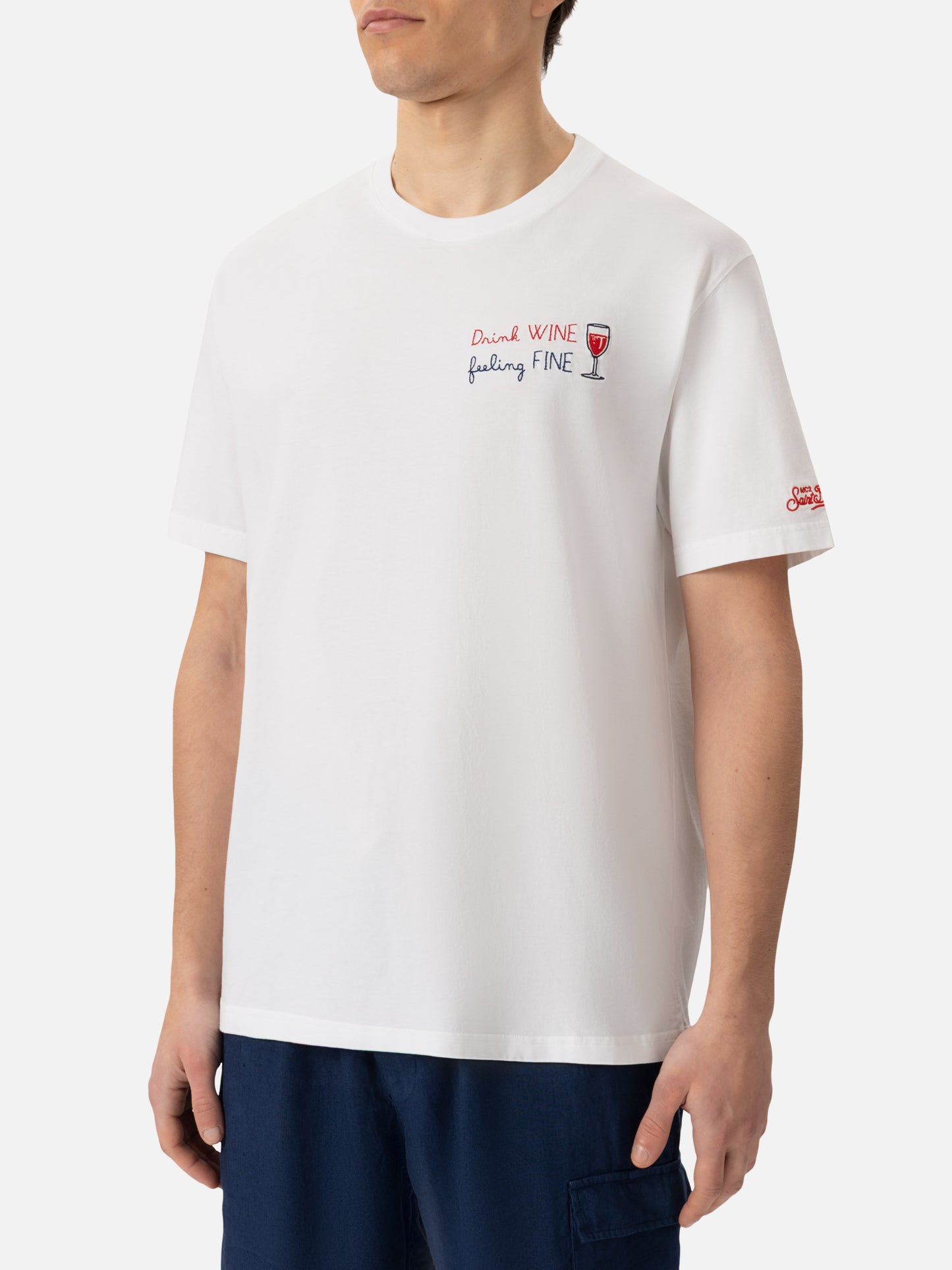 T-shirt Man Portofino in jersey di cotone classic fit con ricamo Drink WINE feeling FINE
