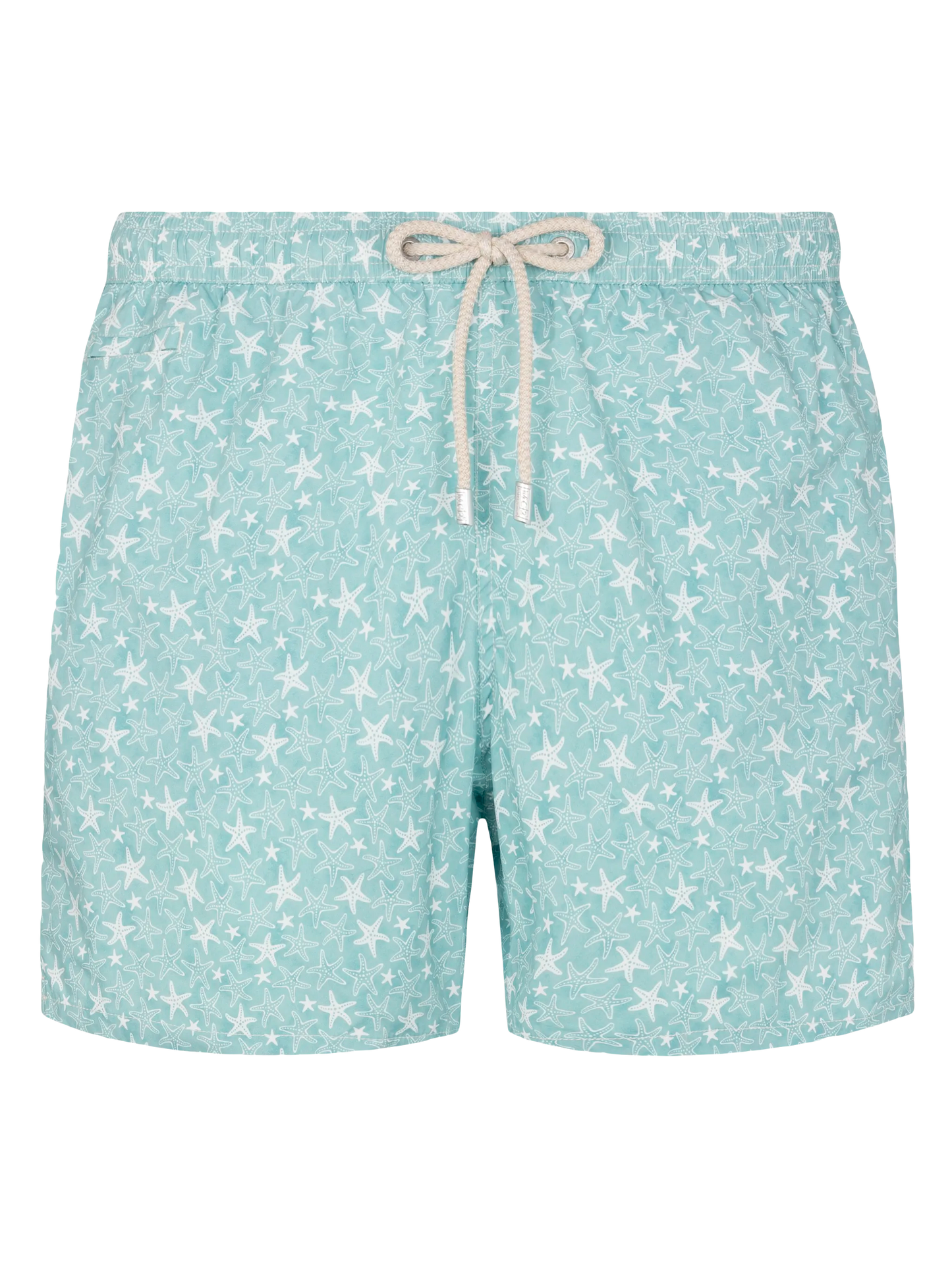 Dalle attività in acqua alle uscite informali, Comfort Light è il costume ideale. Il suo punto di forza è la vestibilità confortevole, grazie al tessuto elasticizzato meccanicamente, leggero e ad asciugatura rapida: una combinazione perfetta di stile, praticità e comfort. Costume mare Comfort uomo Stampa all-over conchiglie tropicali su sfondo verde salvia Tessuto elasticizzato meccanicamente Vestibilità rilassata Tasche laterali a filo Tasca posteriore destra con chiusura in velcro Ricamo esclusivo MC2 Saint Barth sull'orlo sinistro Etichetta MC2 Saint Barth sul retro Slip interno in rete per un maggiore supporto Occhielli brandizzati sul retro per il drenaggio dell'acqua Composizione: 100% poliestere La taglia L ha una mezza vita di 55 cm, una lunghezza totale di 42,5 cm (inclusa la cintura) e un'ampiezza del fondo gamba di 31,5 cm Fascia elastica in vita con coulisse regolabile Il modello è alto 185 cm e indossa una taglia L Istruzioni per la cura: lavare a freddo sotto acqua corrente con sapone neutro. Stendere ad asciugare. Non lasciare in ammollo e non asciugare a contatto con altri indumenti. Non lasciare il capo bagnato a contatto con altri indumenti.
