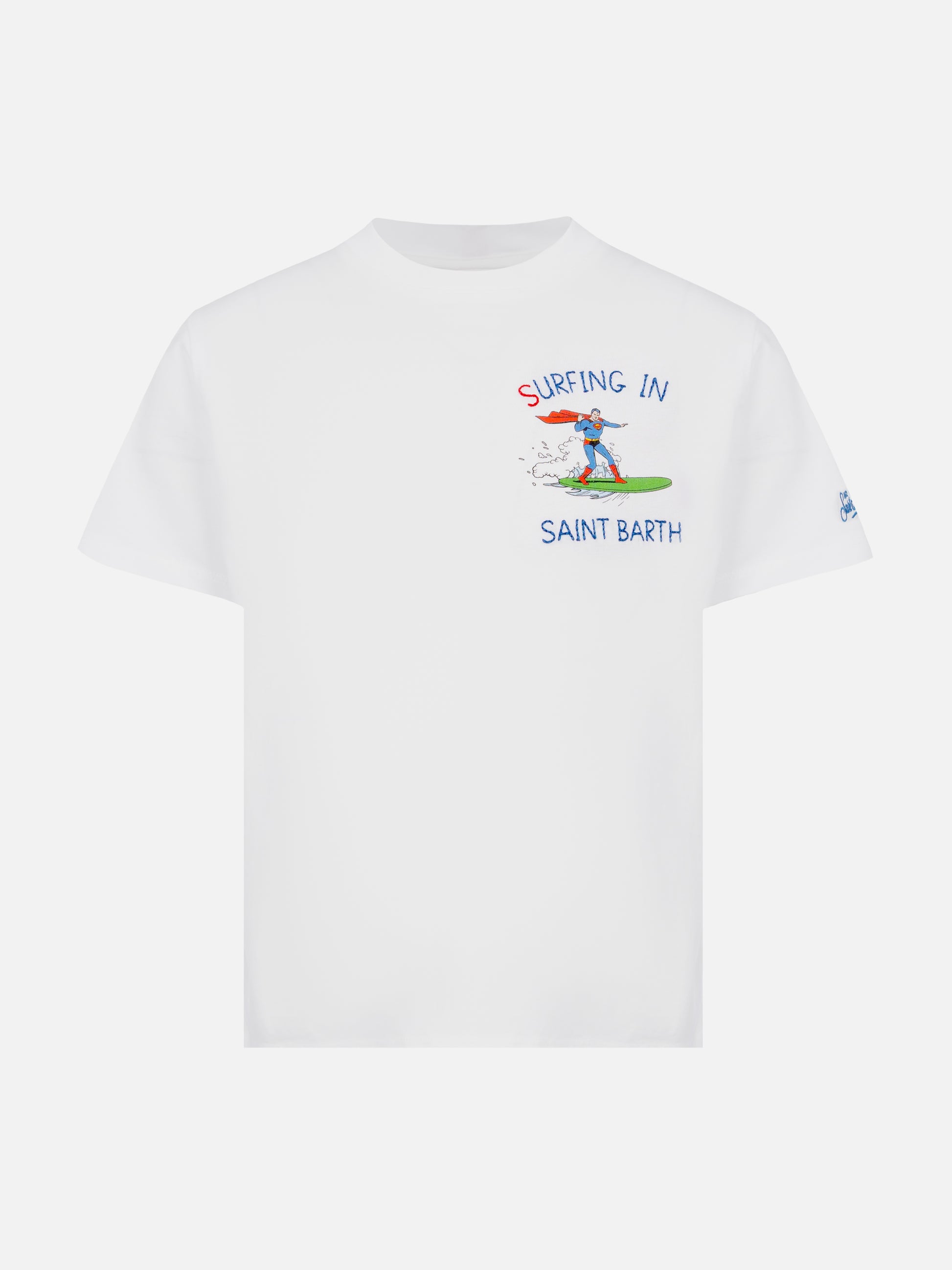 T-shirt in cotone con ricamo Surfing in St. Barth e stampa Superman | MARVEL SPECIAL EDITION