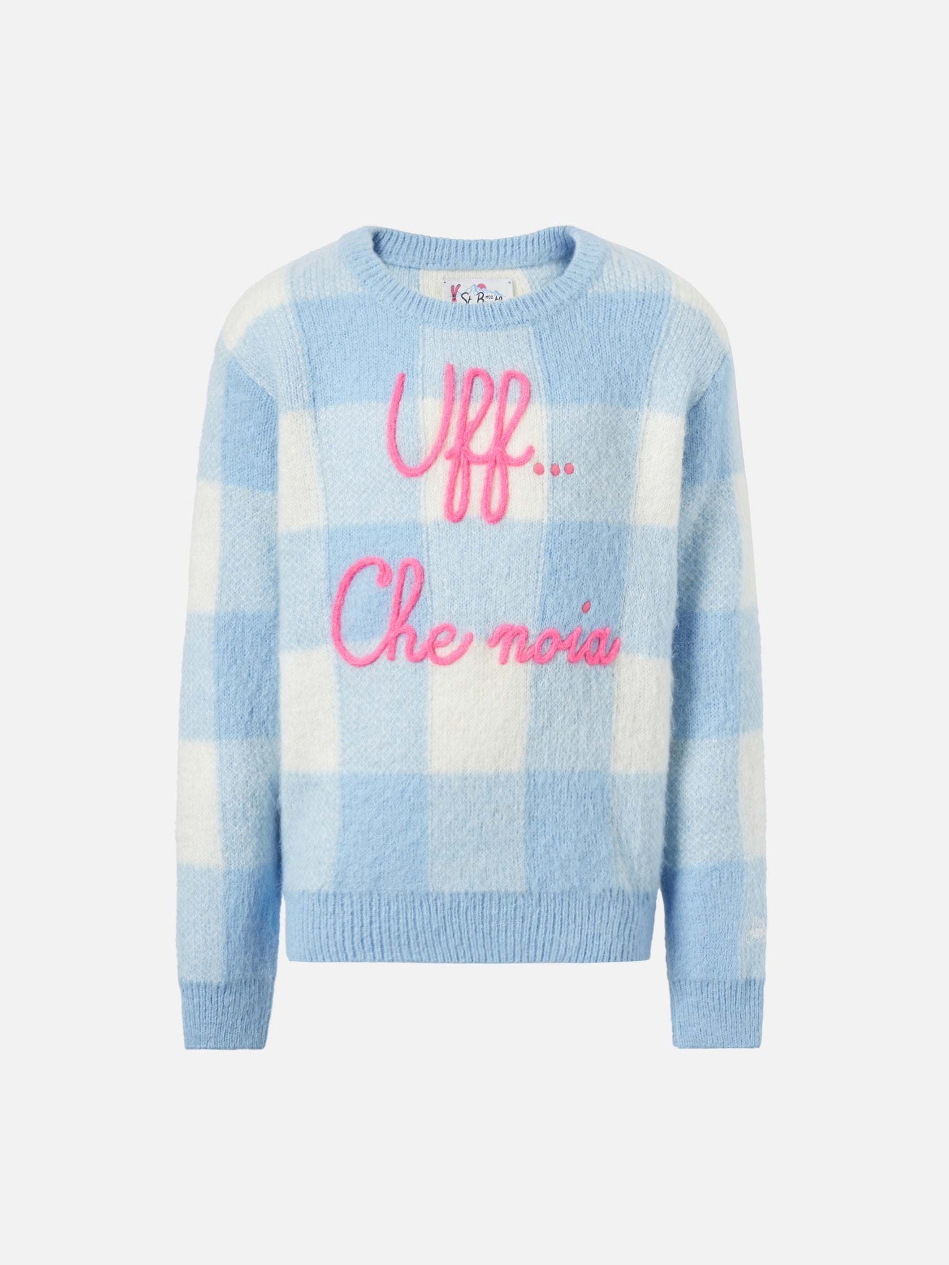 Girocollo con jacquard a quadri e ricamo Uff... che noia