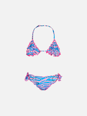 Bikini da bambina a triangolo con stampa bandana zebrata