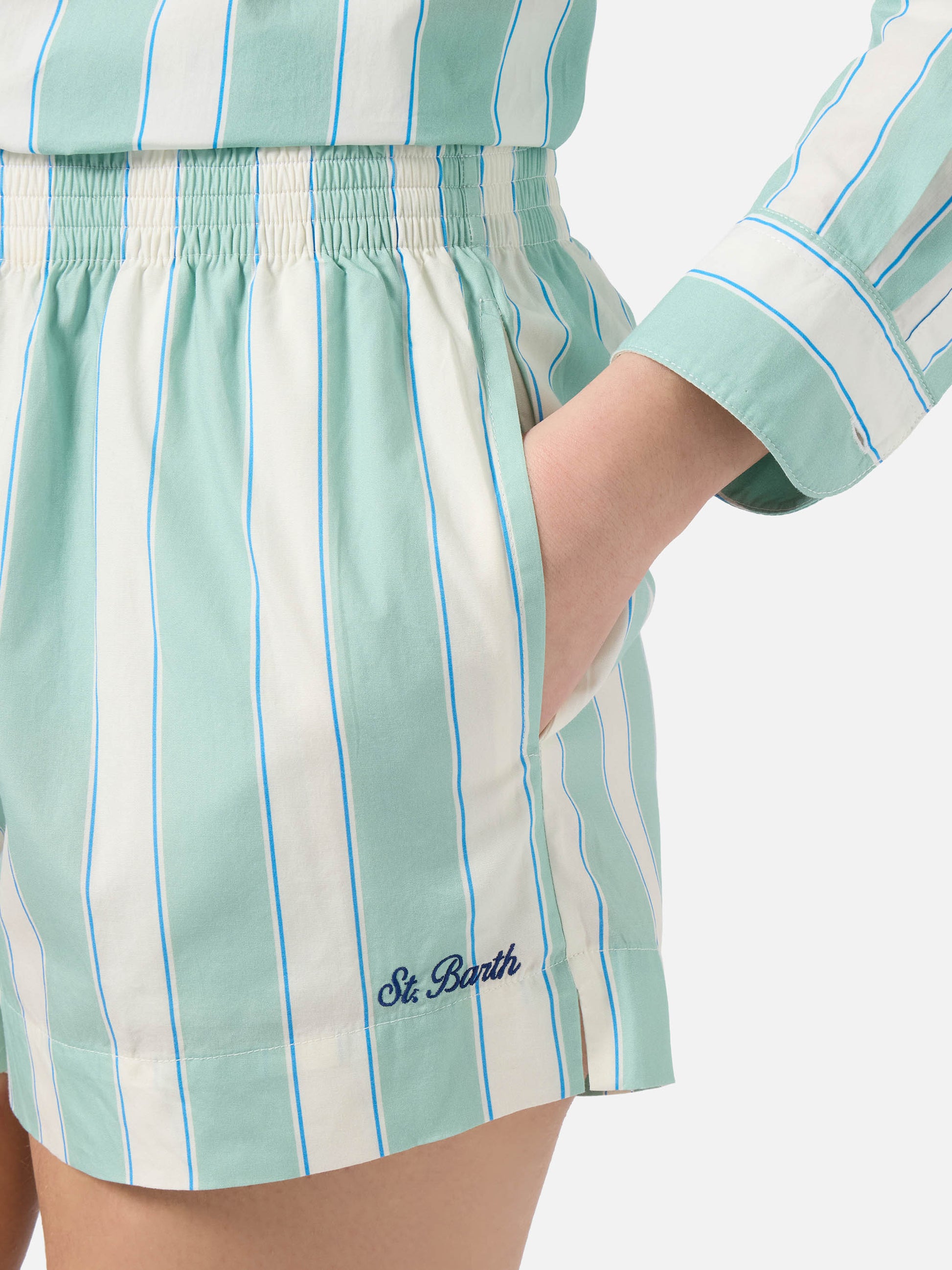 Camicia Brigitte in cotone a righe verdi con ricamo Sport Club