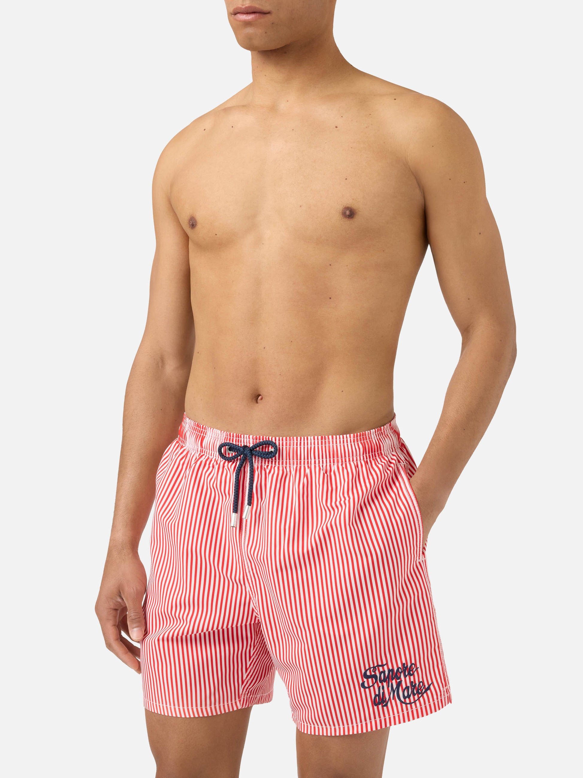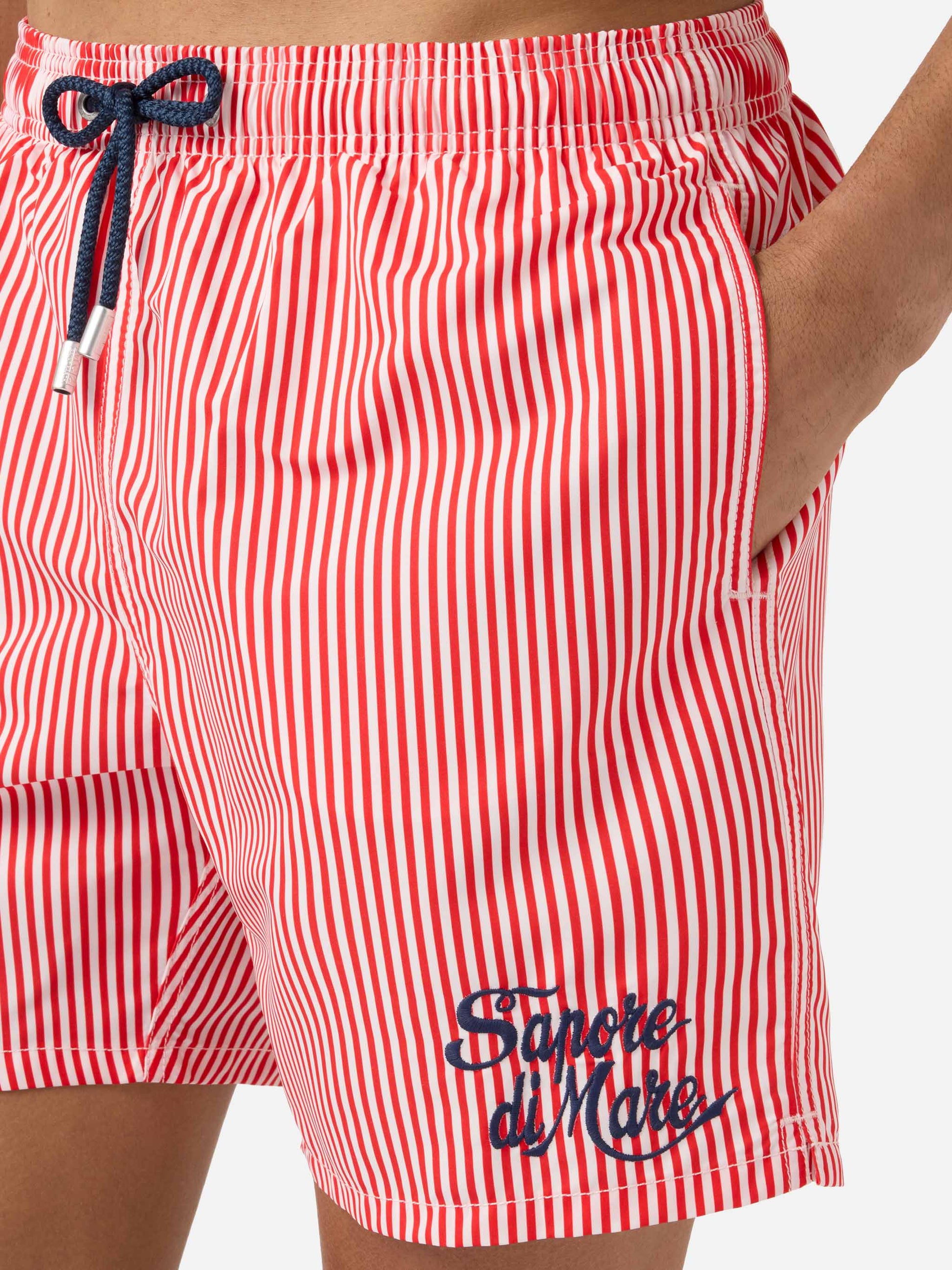 https://it.mc2saintbarth.com/products/gustavia-red-striped-swim-shorts-with-sapore-di-mare-embroidery-special-edition10773486436698Costume mare Gustavia a righe rosse con ricamo Sapore di Mare | Special Edition125,00https:files/UID_GUS000108485L-MAN-SWIMSHORT-RED-MC2-SAPOREDIMARE-20260410164227_1.jpghttps:files/UID_GUS000108485L-MAN-SWIMSHORT-RED-MC2-SAPOREDIMARE-20260410164227_1.jpgEURInStockSWIMSHORT650948215130All Products - Only Man649134276954AVADA - Best Sellers673887977818Dots, Stripes & Checks Swim Shorts674126365018Man striped patterns674079899994Men Mini Print Swim Shorts673877852506Men Print & Graphic Swim Shorts673877754202Men Soft Hand Swim Shorts673877360986Men Swim Shorts644396843354Sapore di Mare626727649626Tessuto Mano Pesca 603371077978Tutti i costumi da bagno288251543736Uomo - Tutti i Costumi da Bagno654689960282UpSelling_Man_SwimshortsIl costume mare Gustavia in Edizione Speciale Sapore di Mare è realizzato in tessuto leggero effetto mano pesca che assicura comfort e una piacevole sensazione sulla pelle. La fantasia a righe nei toni del rosso e bianco richiama un’estetica marinière senza tempo, arricchita dal ricamo Sapore di Mare a contrasto che dona al modello un carattere iconico e distintivo. La vita elasticizzata con coulisse consente di regolare facilmente la vestibilità, mentre la costruzione con tasche laterali, tasca posteriore e retina interna elasticizzata antibatterica garantisce praticità e comfort durante l’uso.