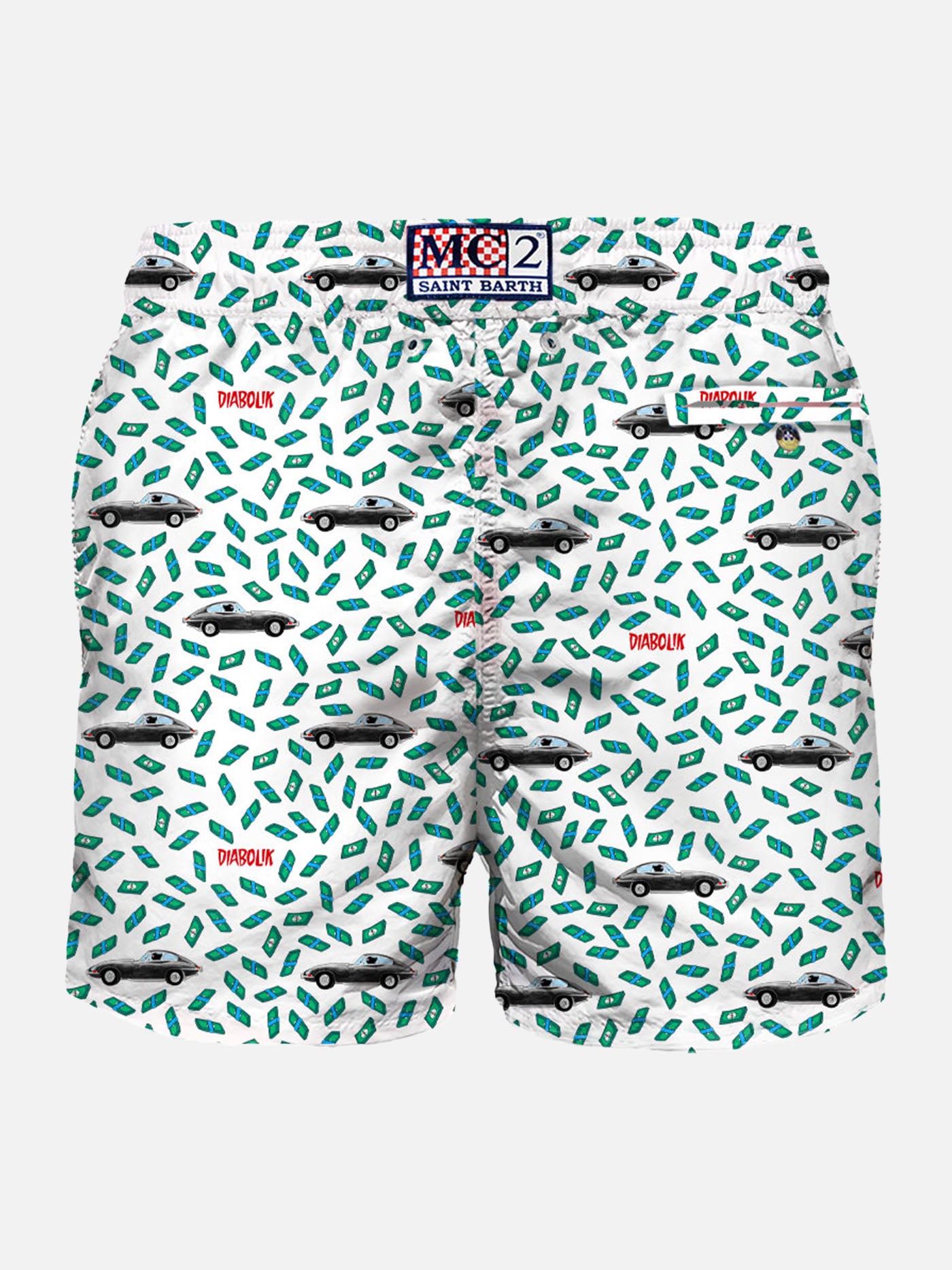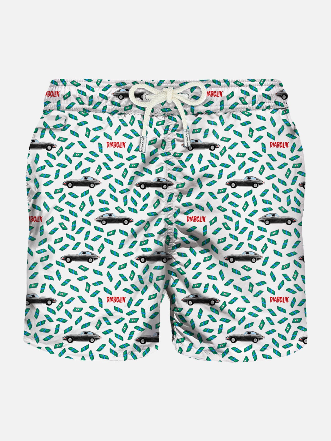 Costume da bagno da uomo in tessuto leggero con stampa auto e soldi | DIABOLIK EDIZIONE SPECIALE