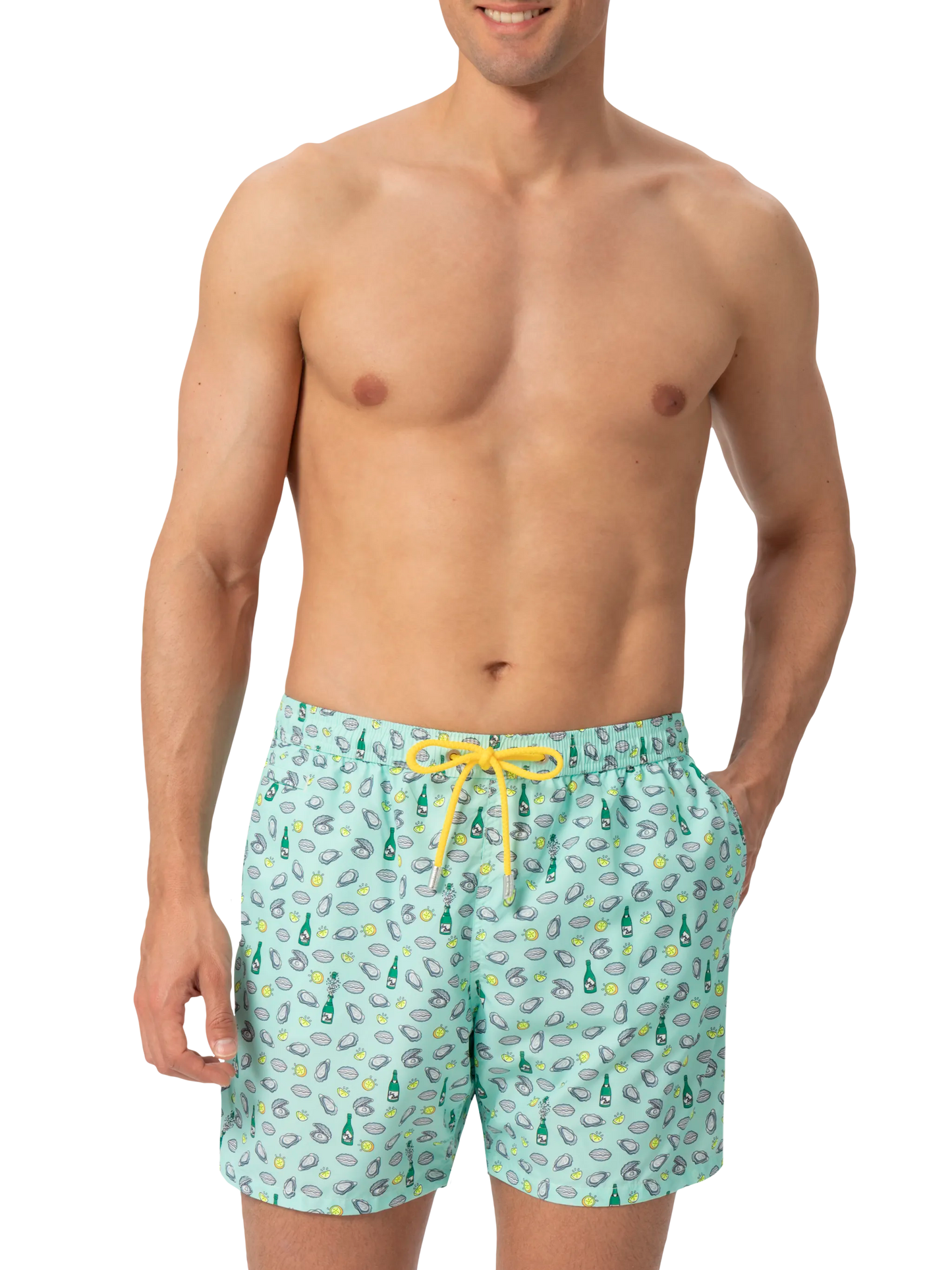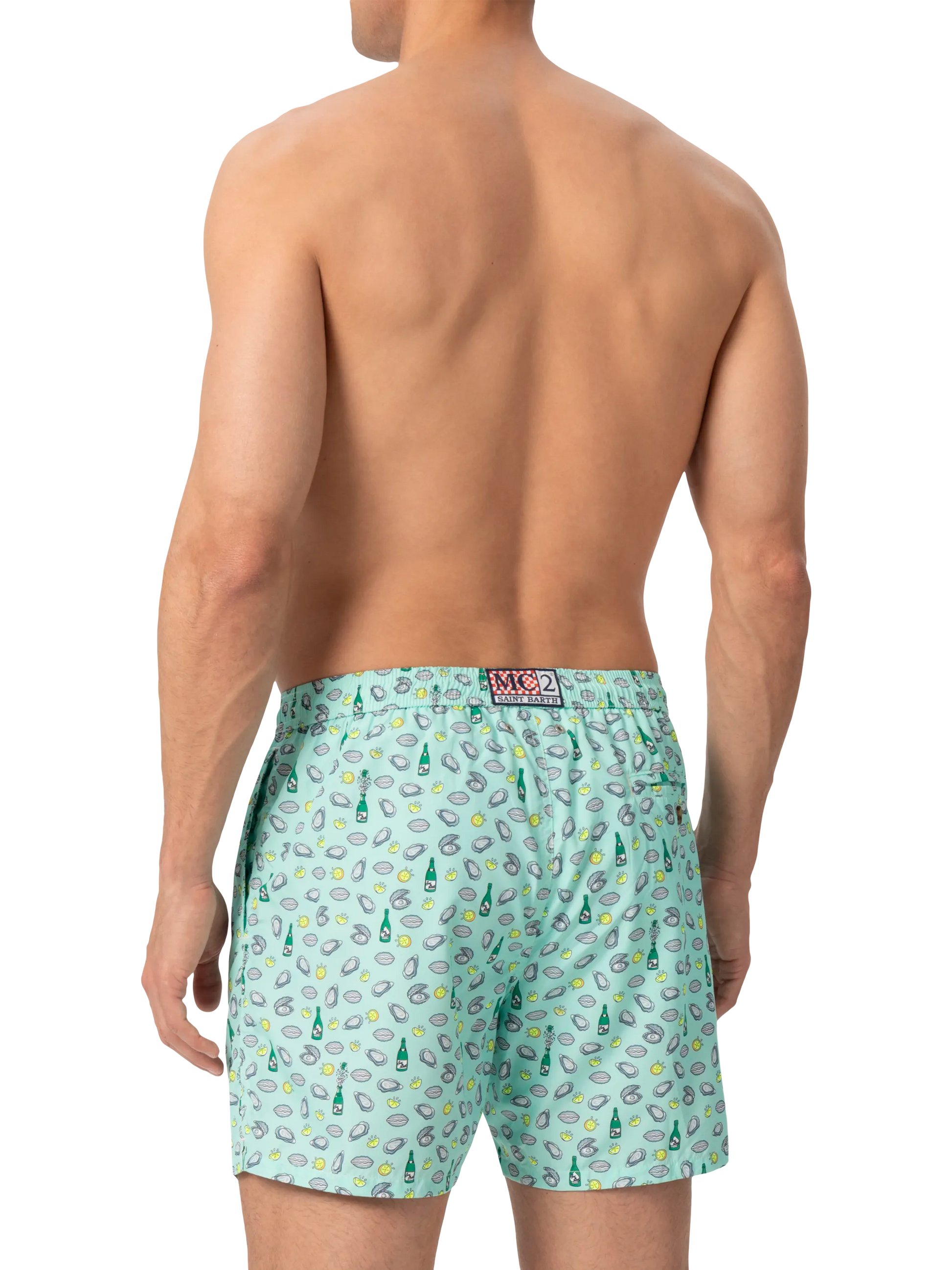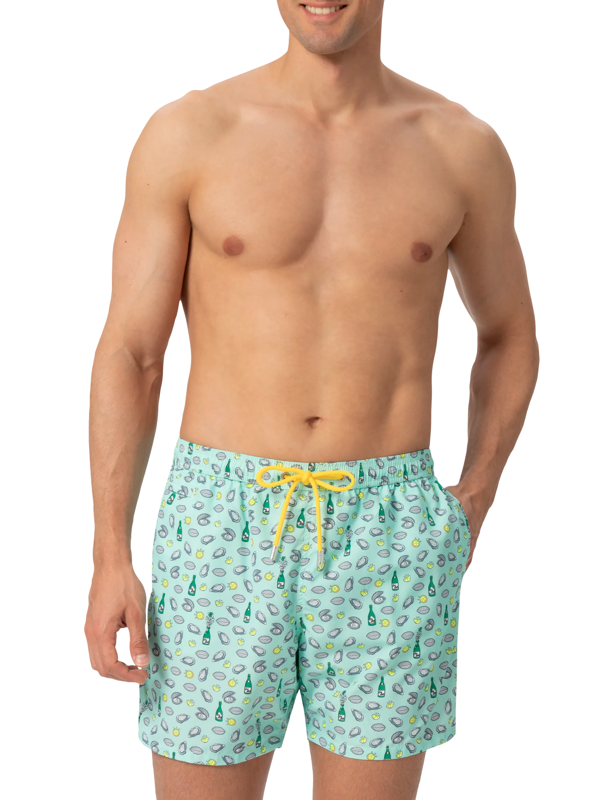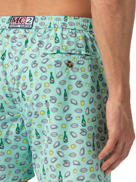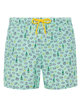 Costume mare Lighting in tessuto leggero con stampa ostriche e bottiglia