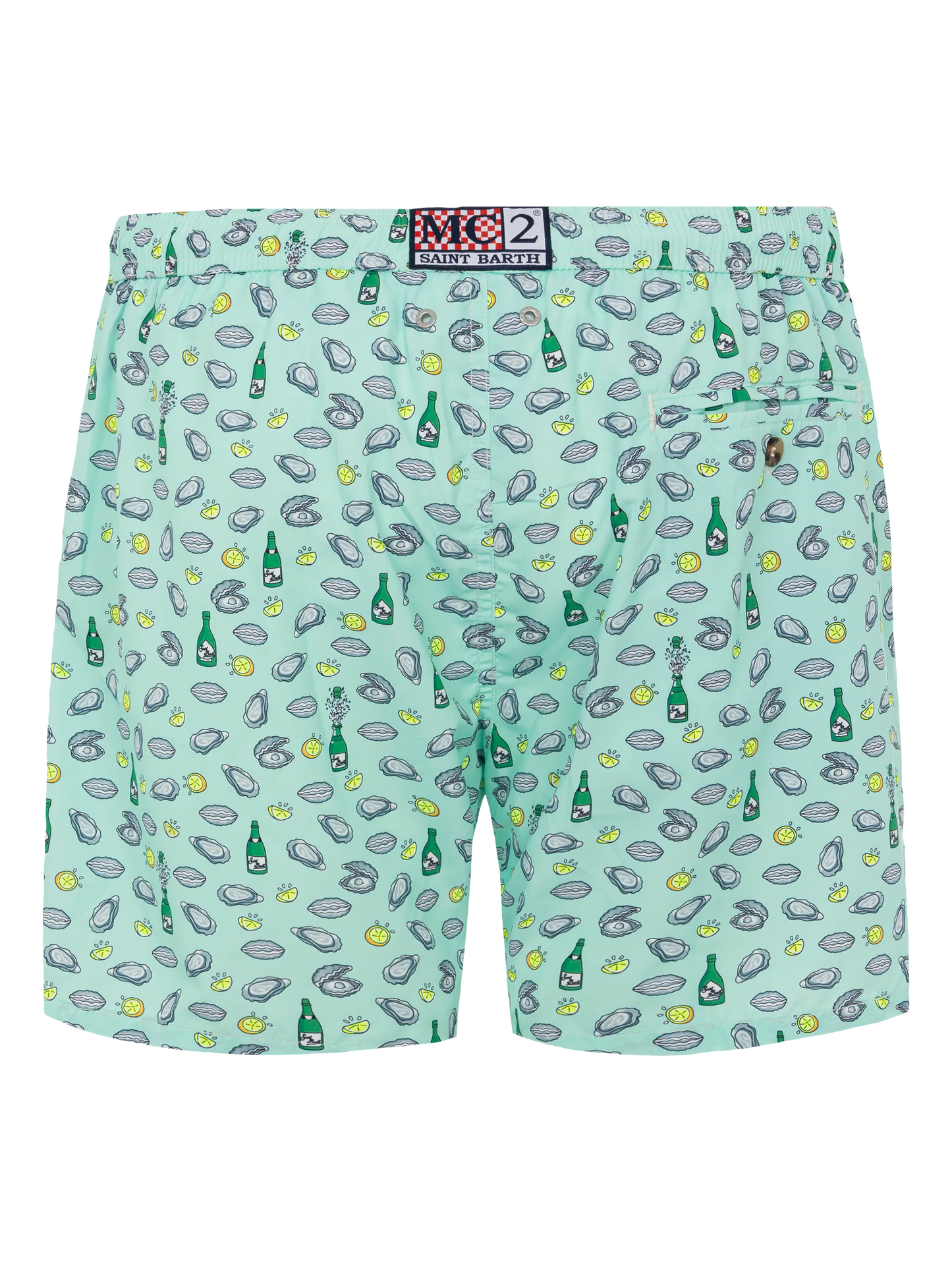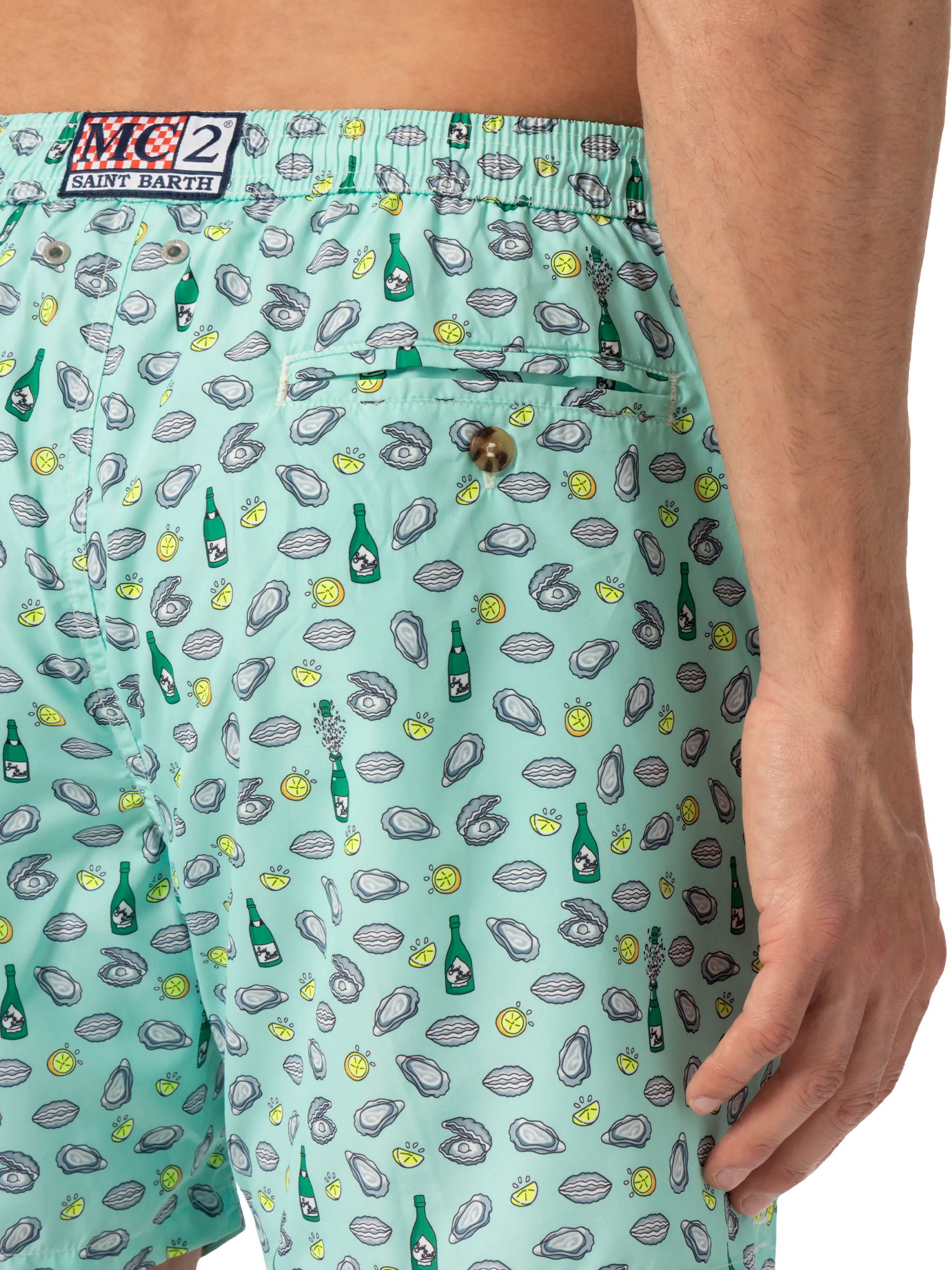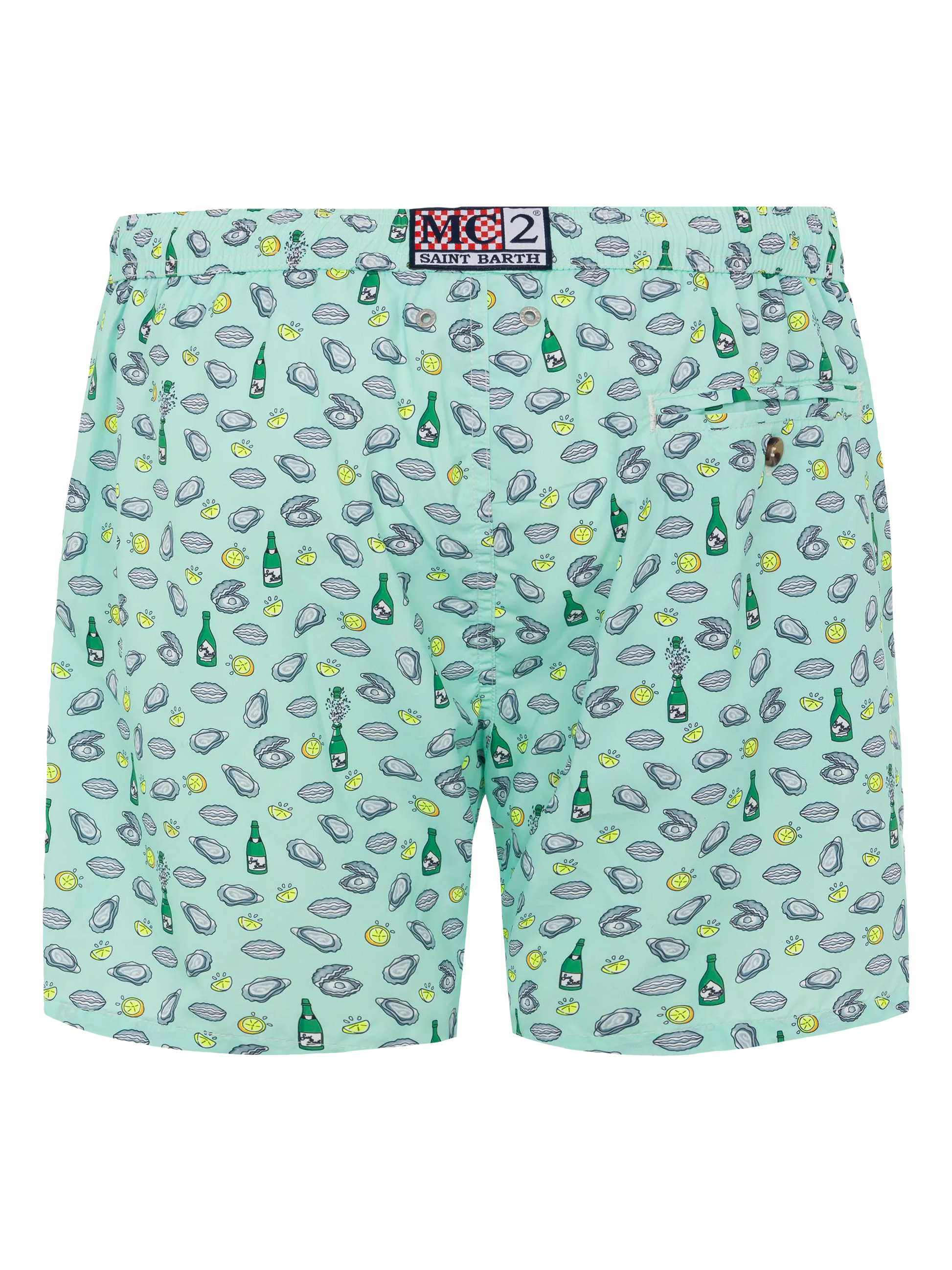 Costume mare Lighting in tessuto leggero con stampa ostriche e bottiglia