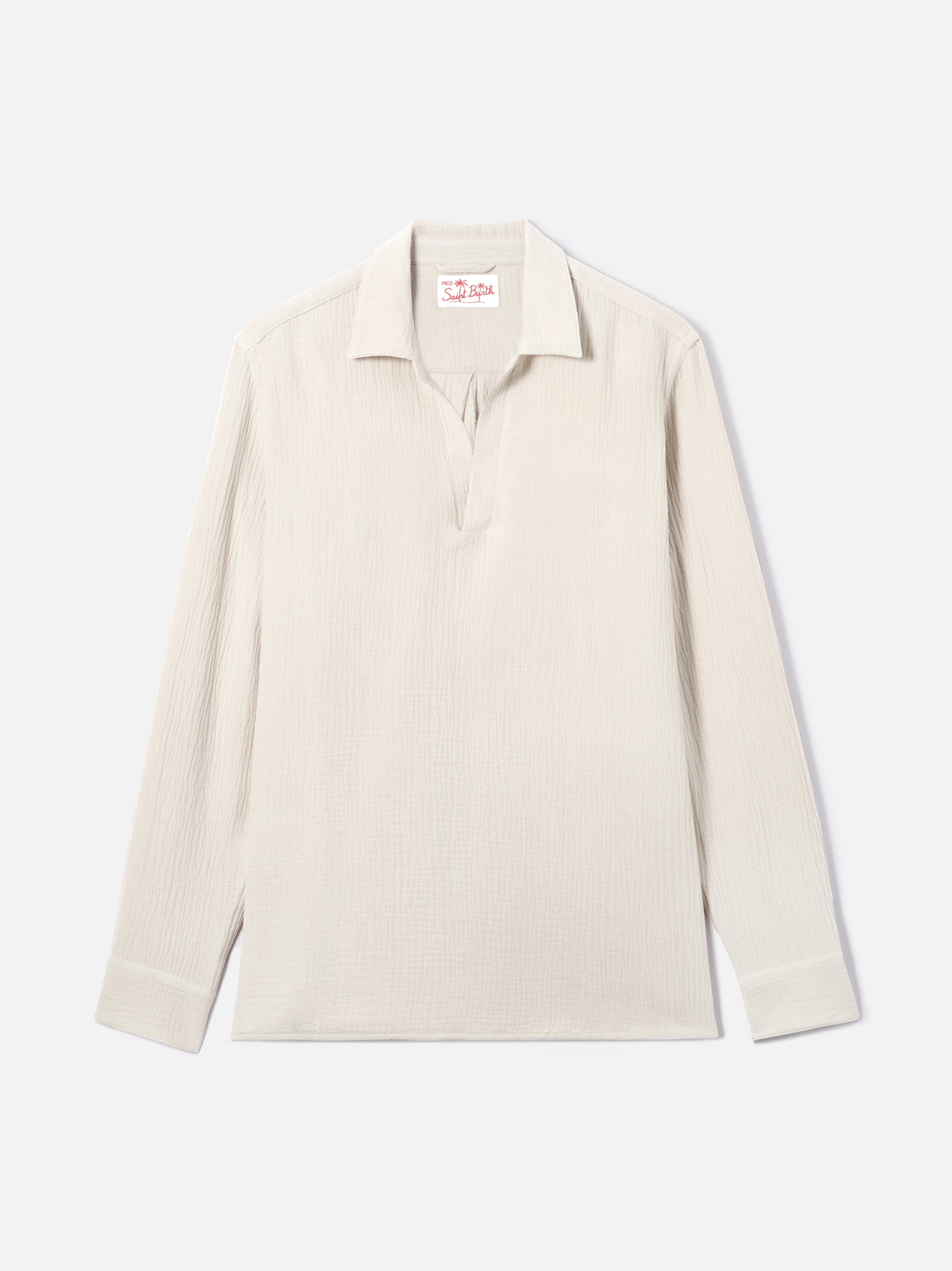 Polo Ventotene beige a maniche lunghe in cotone waffle