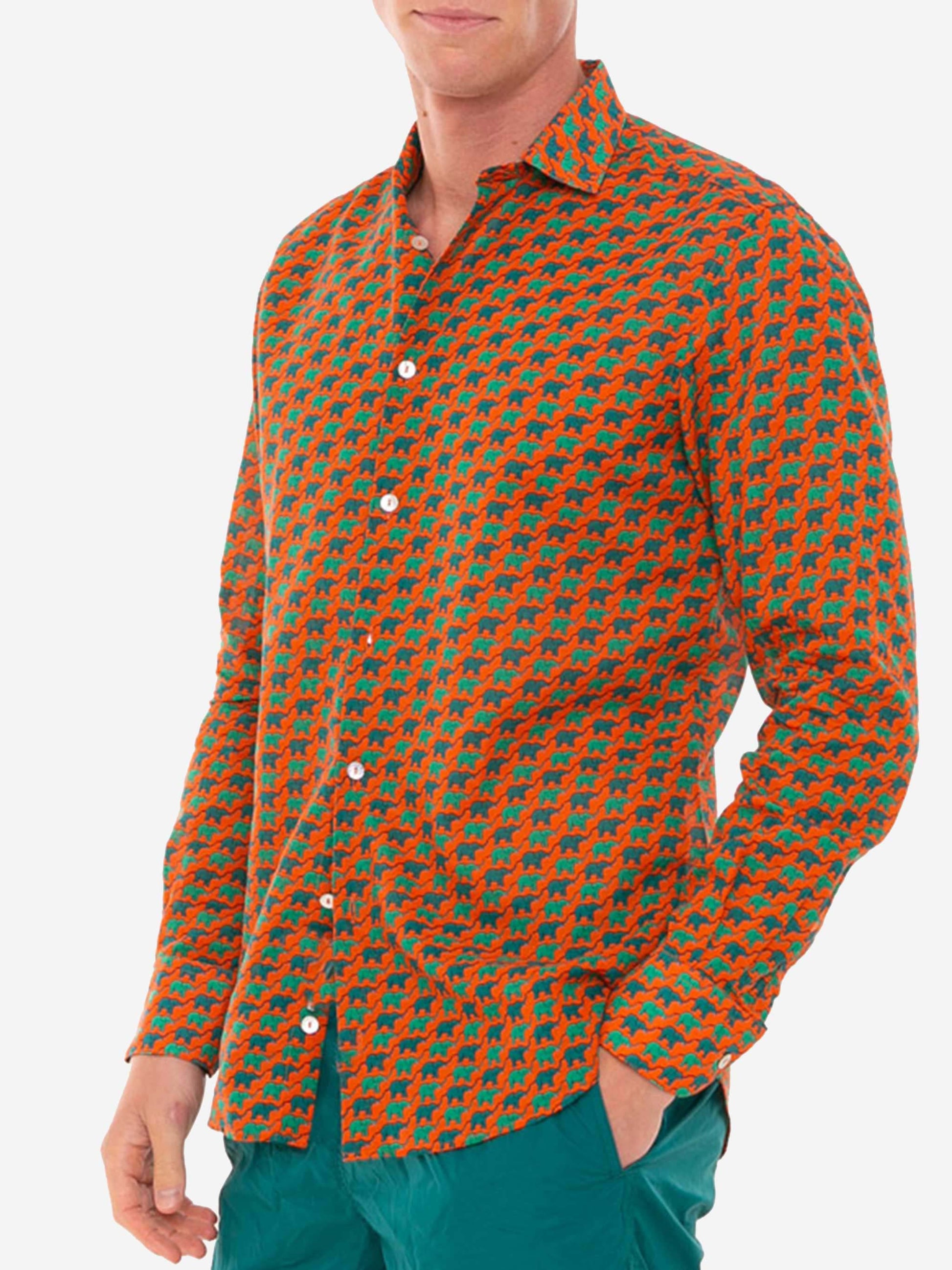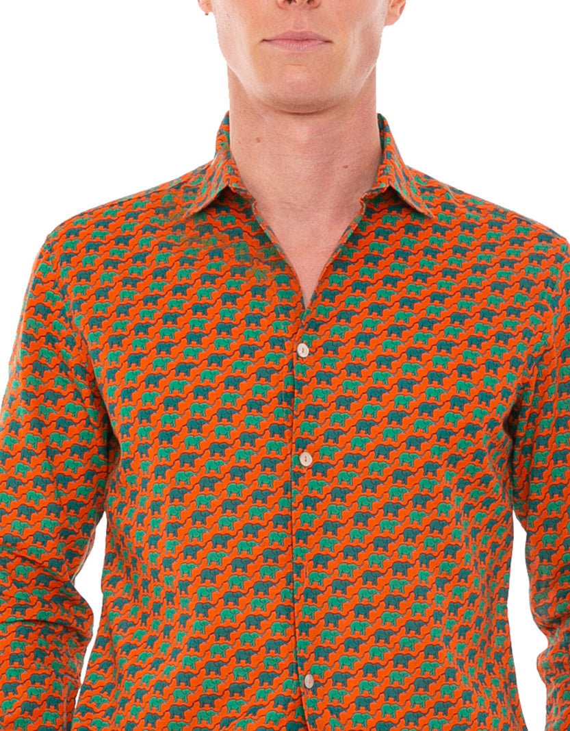 Camicia da uomo Sikelia in mussola di cotone con stampa elefante