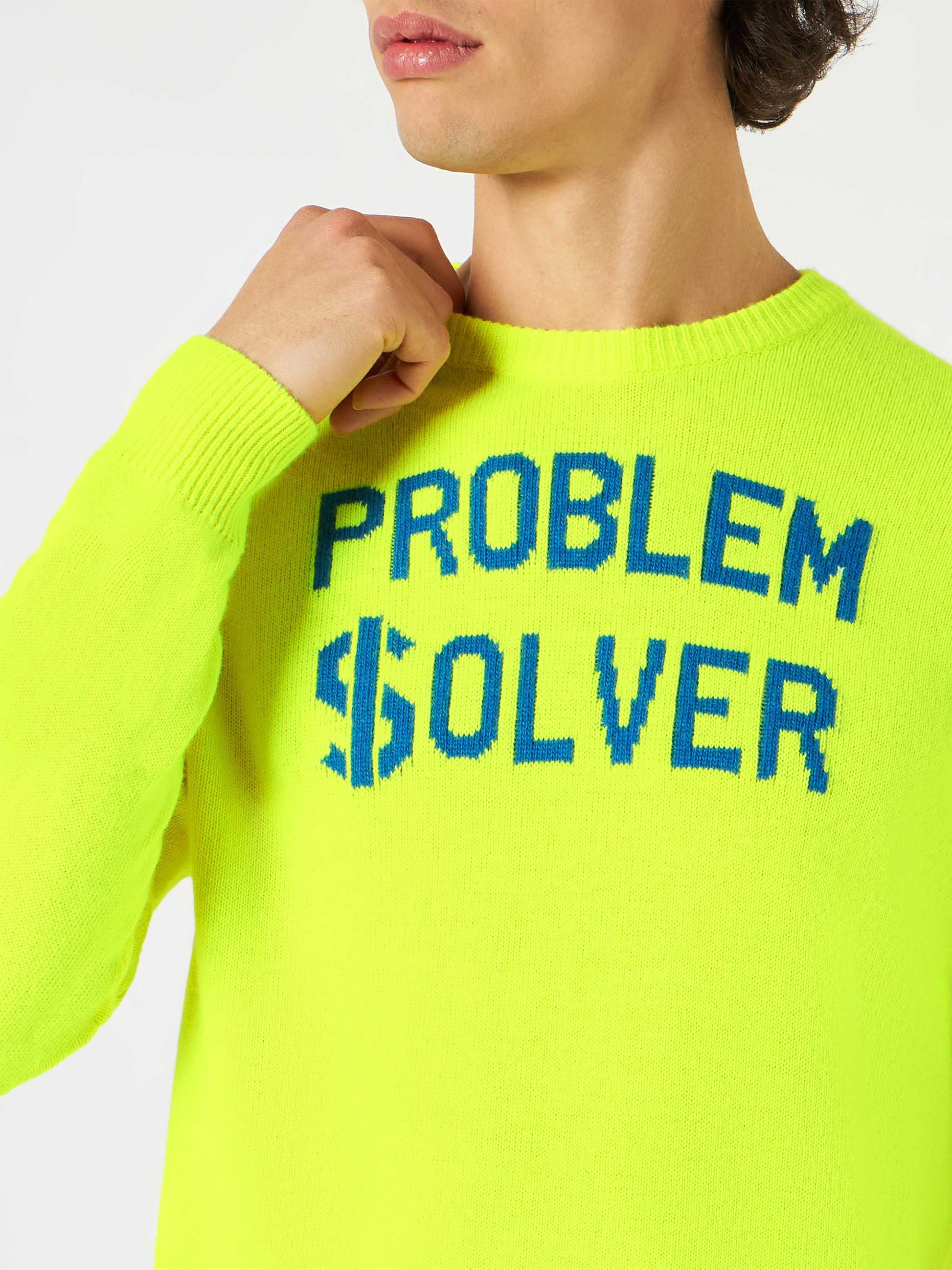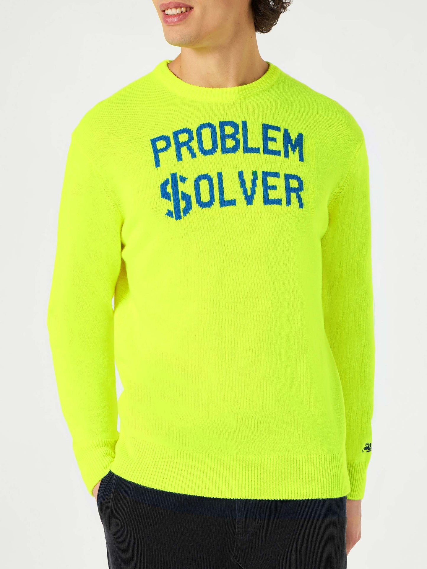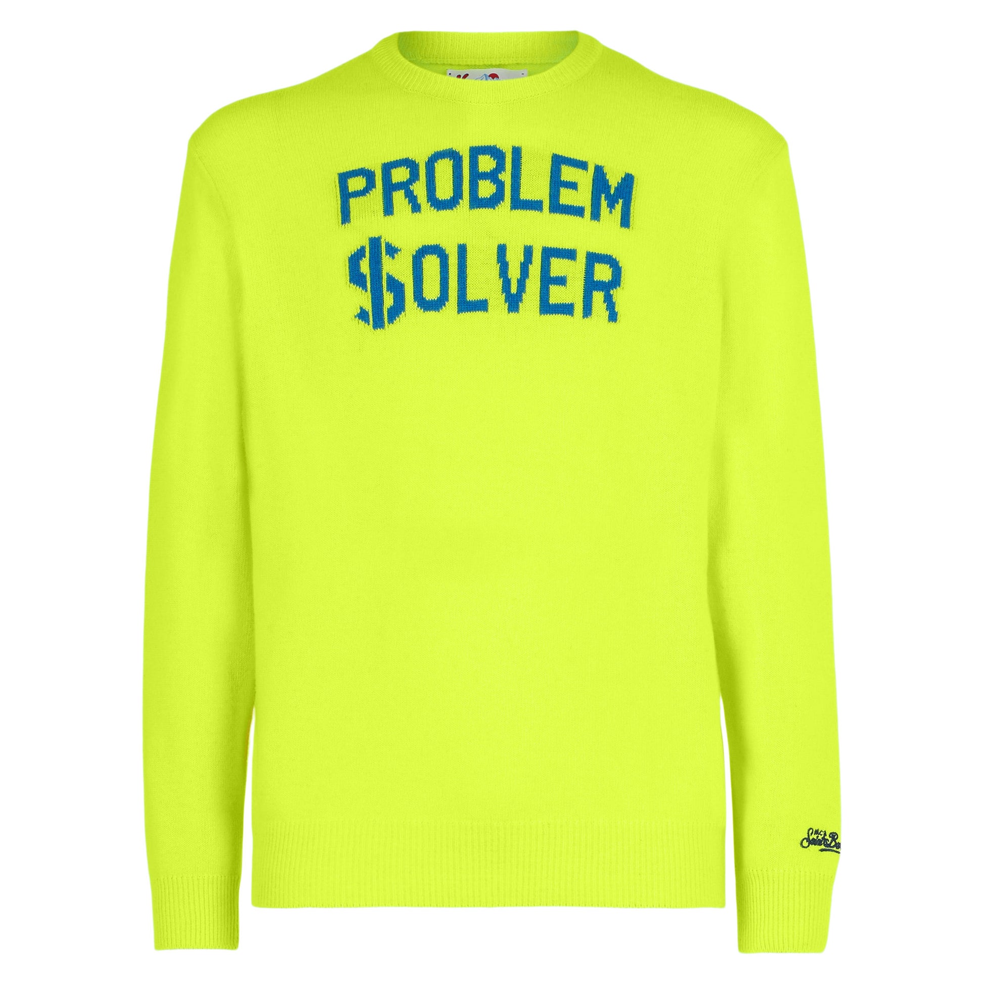 Maglione da uomo giallo fluo con stampa Problem $olver