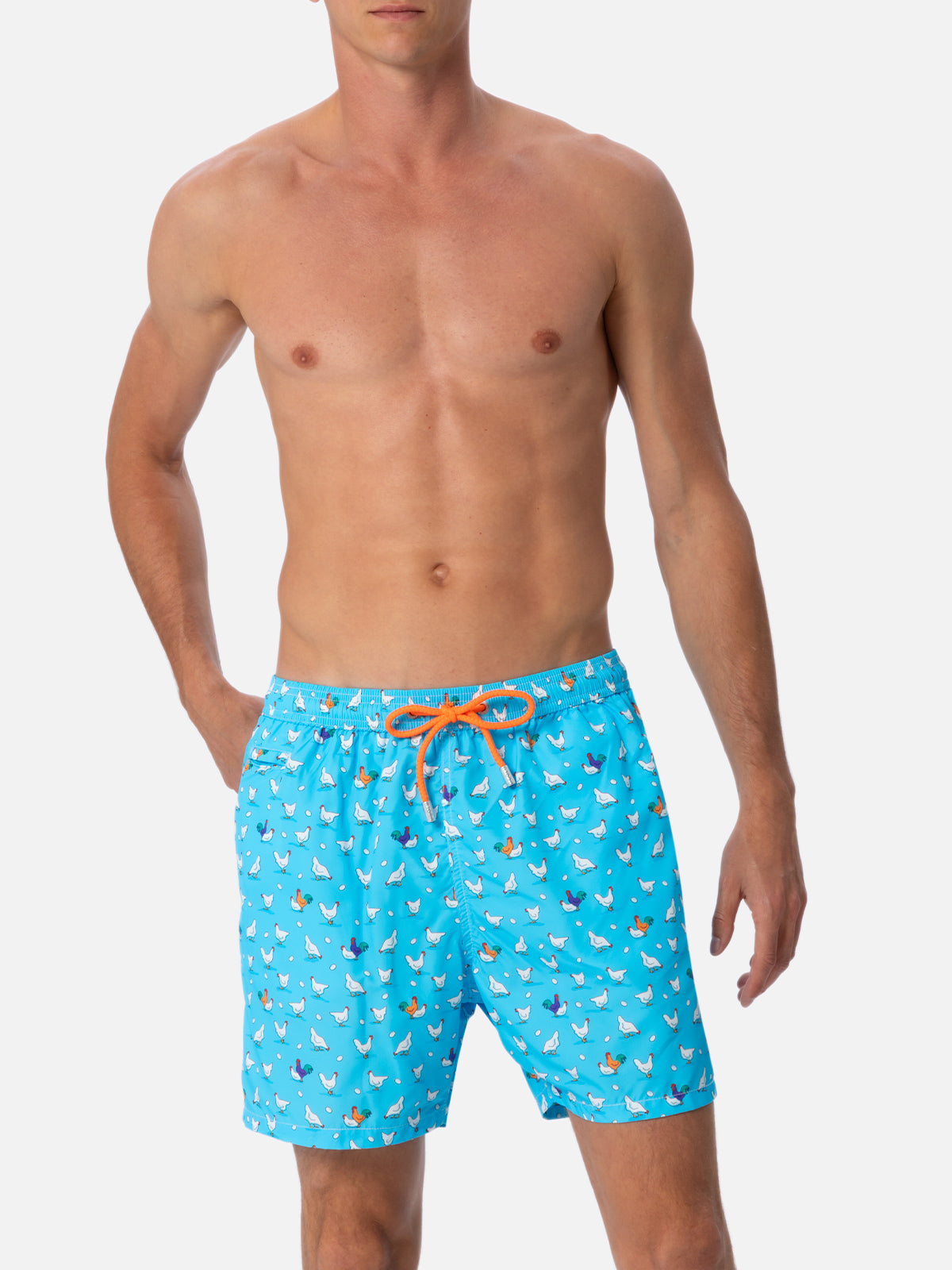 Costume da bagno da uomo in tessuto leggero Lighting Micro Fantasy con stampa gallo