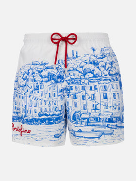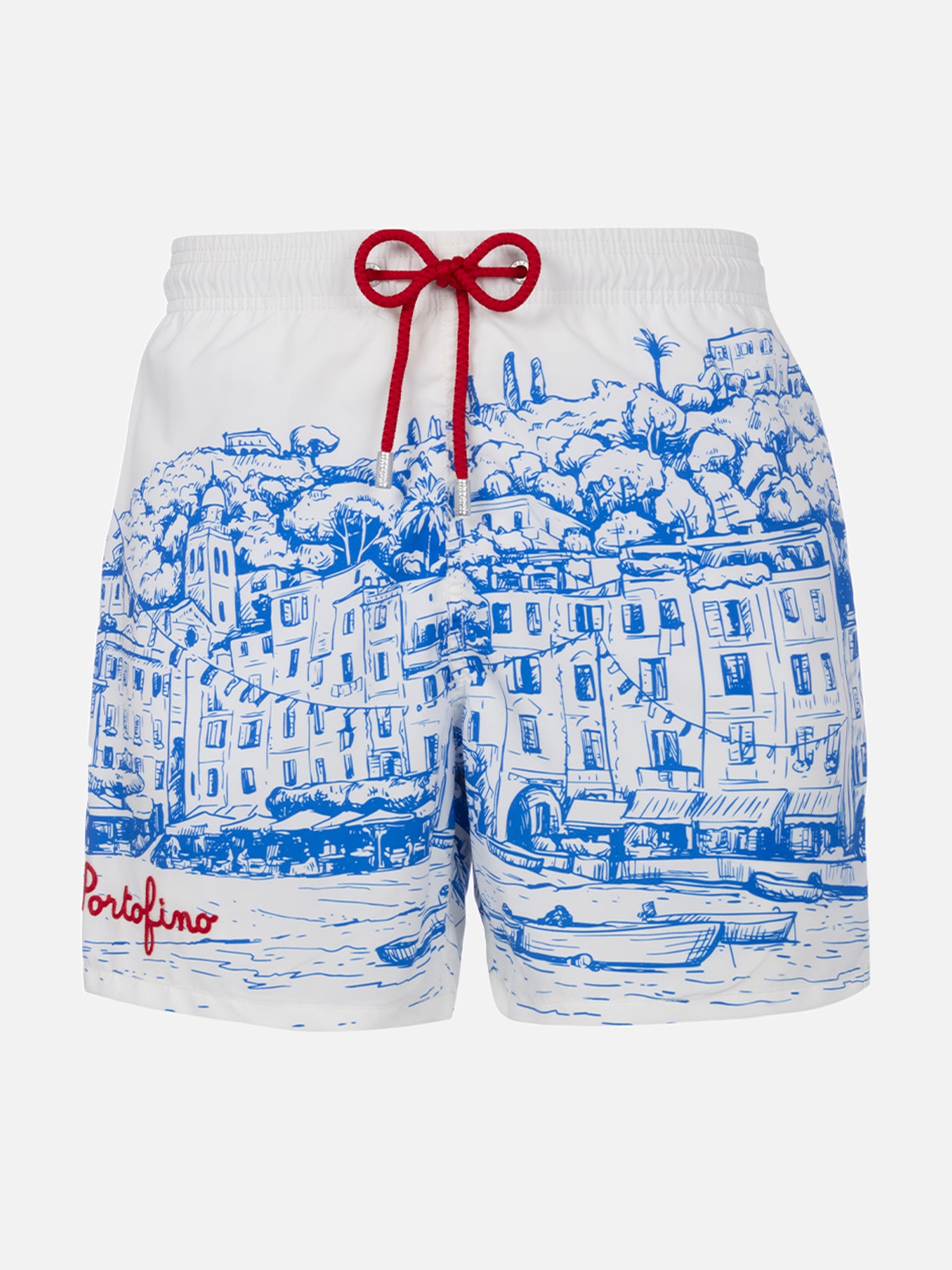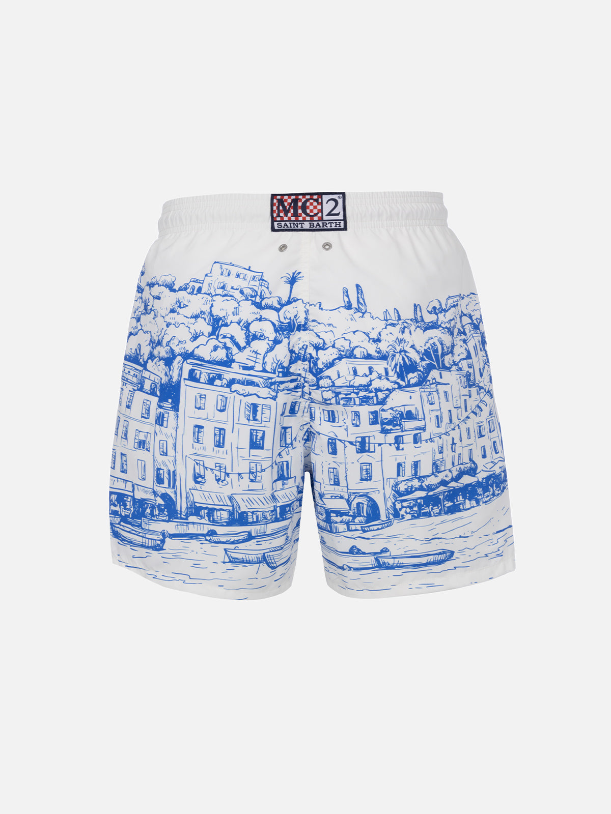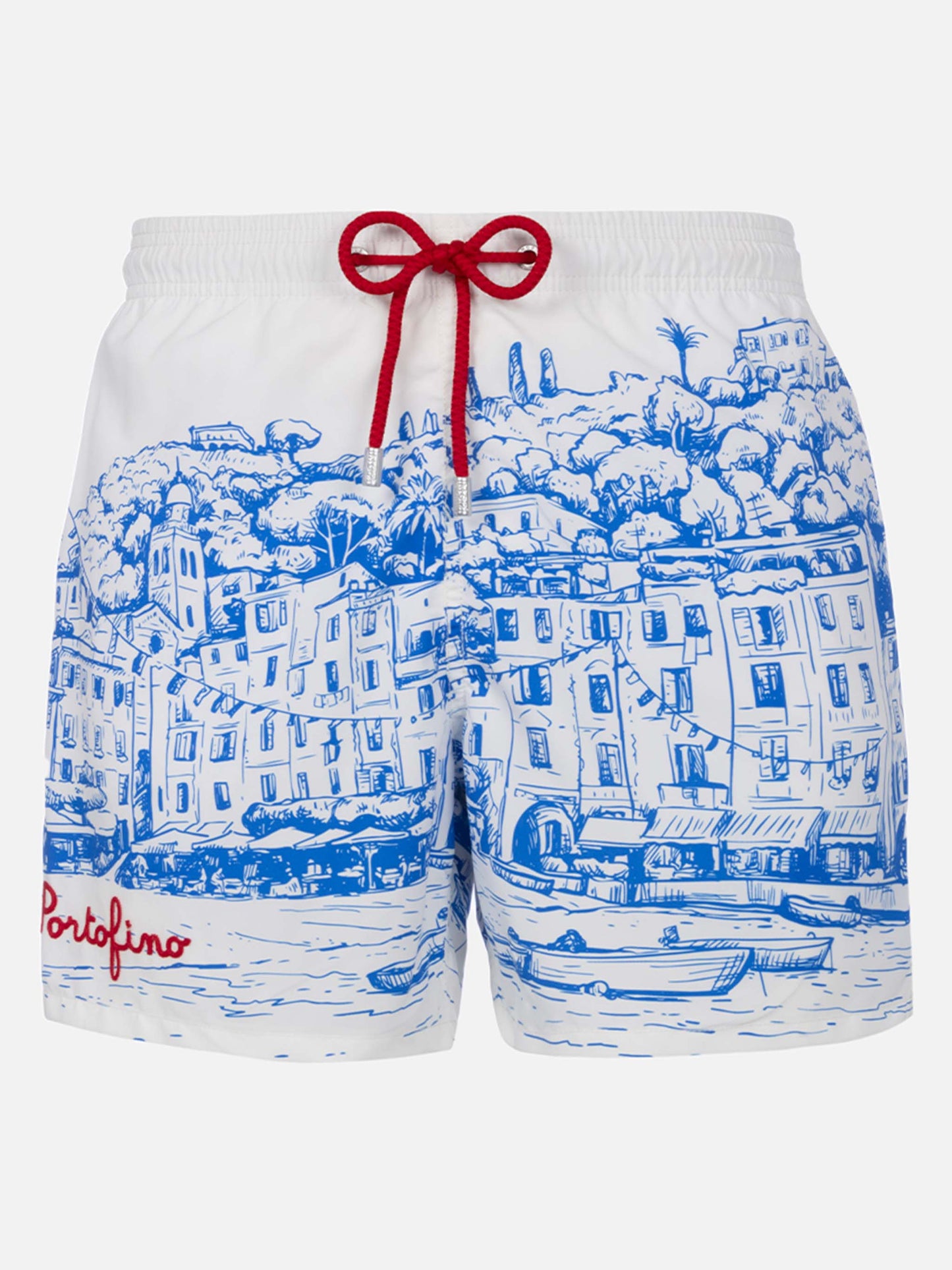 Costume da bagno da uomo Gustavia lunghezza media con stampa piazzata Portofino