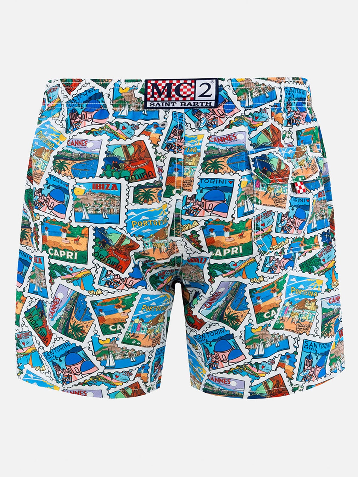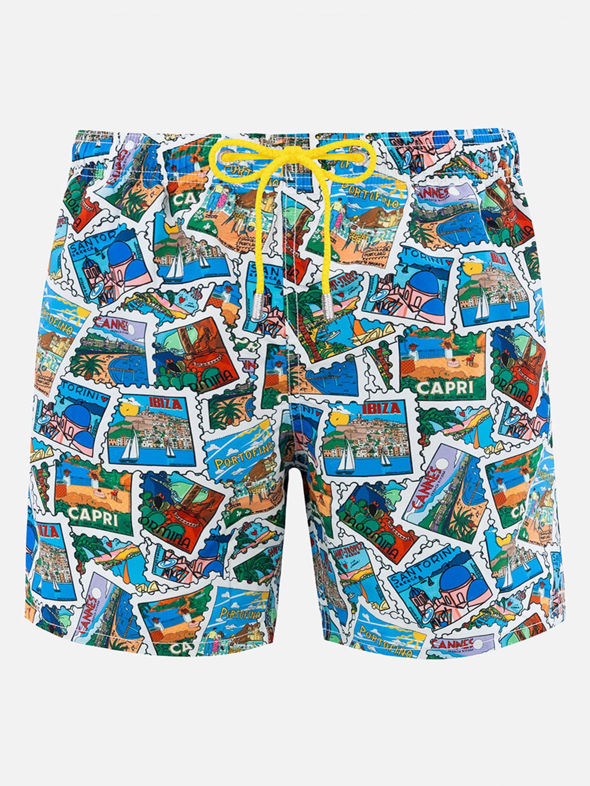 Costume da bagno da uomo Gustavia lunghezza media con stampa mix di cartoline | EDIZIONE SPECIALE ALESSANDRO ENRIQUEZ