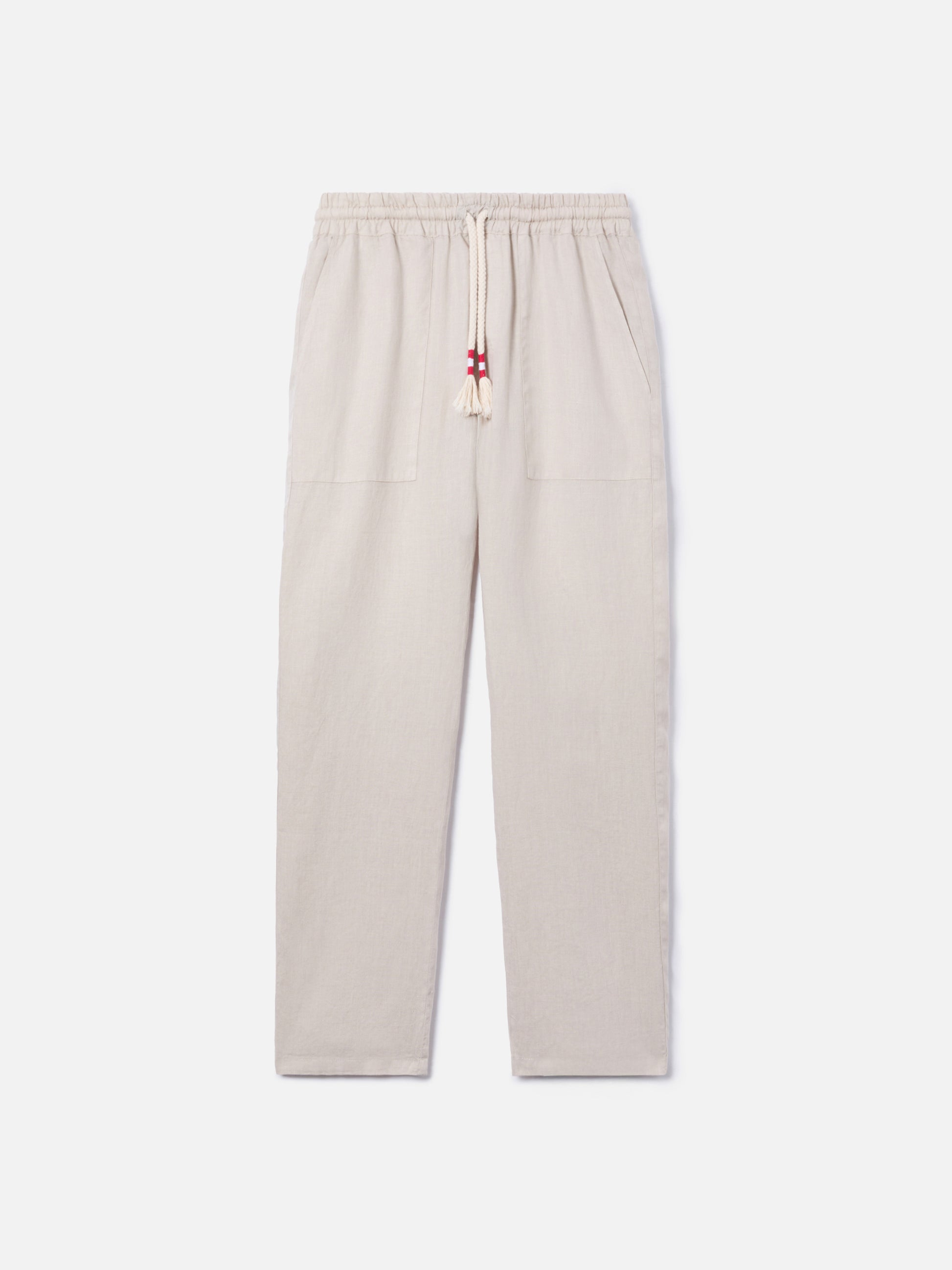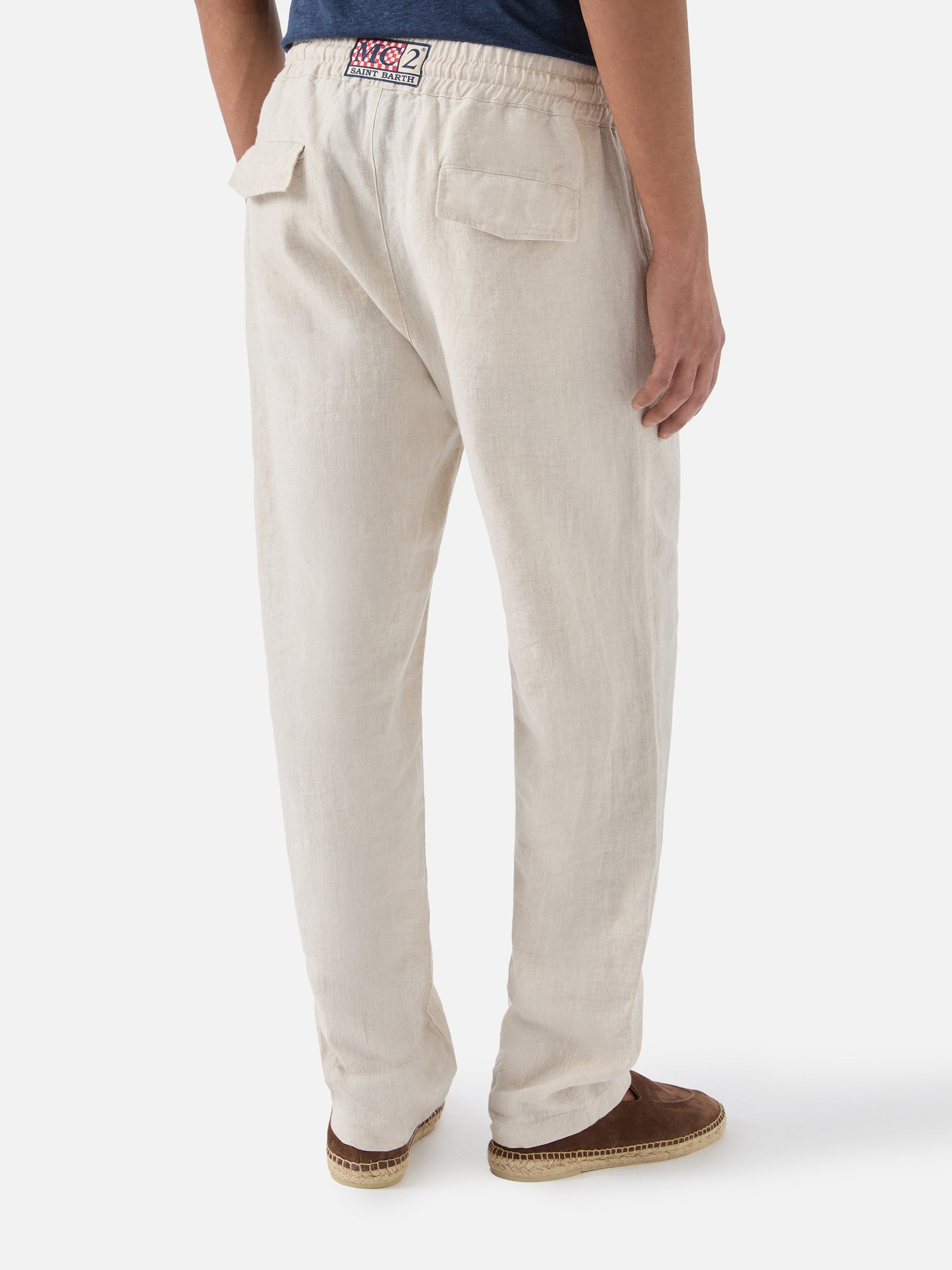 Pantaloni da uomo Calais in lino bianco sporco con coulisse