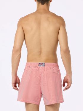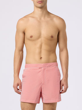 Vi presentiamo i pantaloncini da bagno Master, un modello iconico di St. Barth. Progettato con vita elasticizzata sul retro e fissata sul davanti, arricchito da un dettaglio tecnico caratterizzato da chiusura magnetica e bottone interno (zip nascosta sul davanti). Sono dotati di zip nascosta e coulisse interna, tasche laterali e tasca posteriore con chiusura zip. I pantaloncini offrono una vestibilità regolare e sono realizzati in tessuto elasticizzato meccanico di poliestere ultraleggero e morbido al tatto con elasticità meccanica per un maggiore comfort. Costume corto da uomo Master Tessuto a righe rosse e bianche Chiusura con bottone magnetico con zip nascosta e coulisse interna Cintura posteriore elasticizzata per il massimo comfort Fodera interna in rete Tasche posteriori con chiusura zip Etichetta esclusiva MC2 Saint Barth sul retro Vestibilità regolare Composizione: 100% poliestere La taglia L ha una larghezza della mezza cintura di 47,5 cm (allungata) e varia di 2 cm per ogni taglia; lunghezza laterale compresa la cintura 37,5 cm e varia di 1 cm per ogni taglia Si prega di notare che tutte le misure fornite sono approssimative e soggette a una tolleranza di 1-2 cm dovuta alla misurazione manuale. Questo intervallo di tolleranza è normale e dovrebbe essere previsto. La modella è alta 185 cm e indossa una taglia L Istruzioni per la cura: lavare a freddo con acqua corrente e sapone neutro. Appendere ad asciugare. Non lasciare in ammollo e non asciugare a contatto con altri indumenti. Non lasciare il capo bagnato a contatto con altri indumenti.