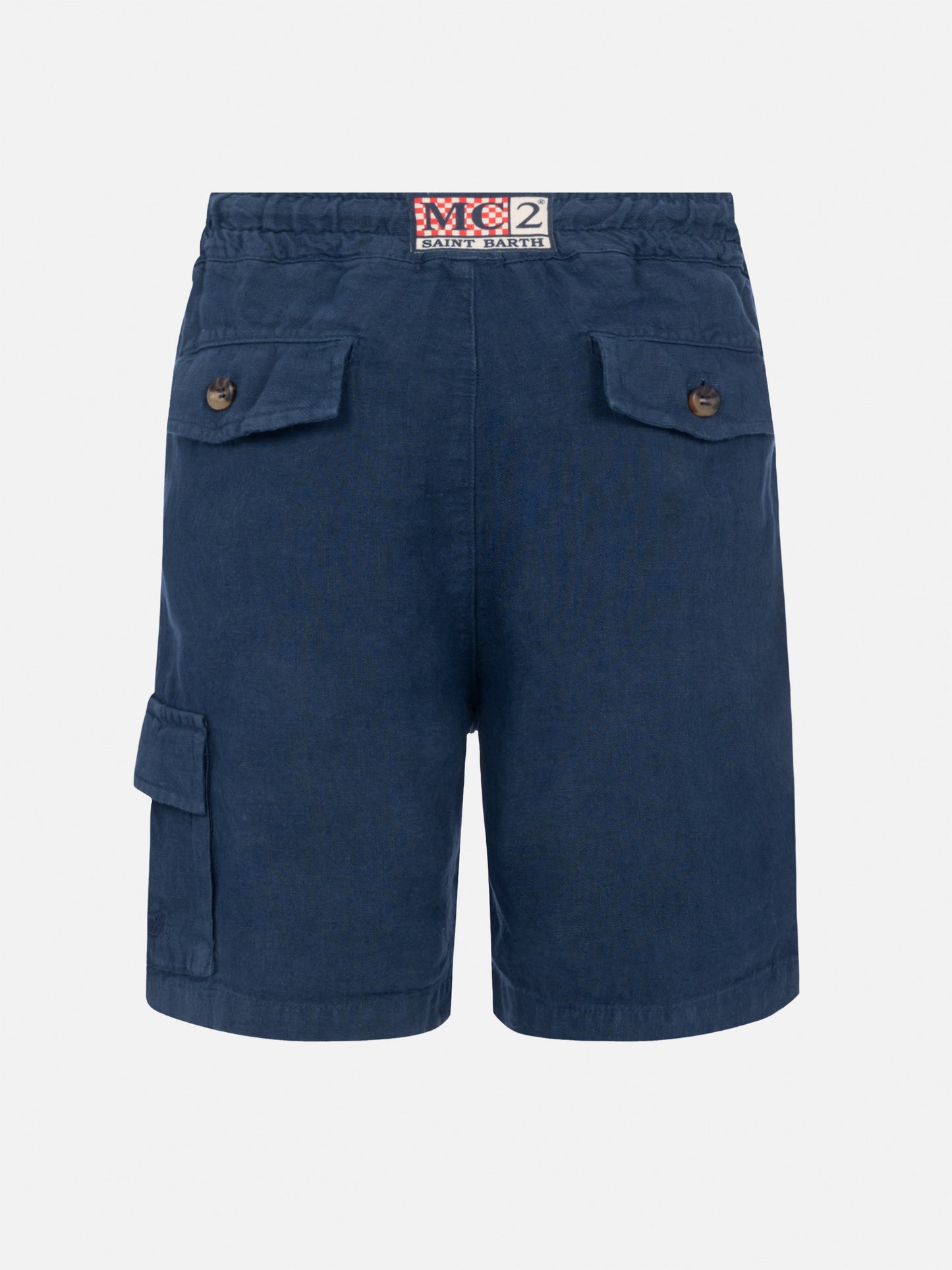 Scopri Marseille Jr, il perfetto equilibrio tra stile e comfort. Questi bermuda in lino per bambini sono dotati di vita elasticizzata con coulisse, garantendo una vestibilità sicura e confortevole. Pensati per la massima funzionalità, includono tasche laterali, una tasca utility sulla gamba sinistra e tasche posteriori con patta e bottoni. La chiusura frontale nascosta dona un look pulito, mentre l’etichetta brandizzata sul retro aggiunge un tocco di raffinatezza. Bermuda Marseille Jr in lino Colore blu navy tinta unita Vita elasticizzata Chiusura con coulisse Tasche laterali alla francese Tasca utility sulla gamba sinistra Tasche posteriori con chiusura a bottone Etichetta posteriore con logo esclusivo MC2 Saint Barth Vestibilità regolare Composizione: 100% lino La taglia 6 anni ha una mezza circonferenza vita di 34 cm (estensibile) e varia di 1/2 cm a seconda della taglia; lunghezza di 36 cm (cintura inclusa) e varia di 1,5/3 cm per ogni taglia, a seconda della misura Nota: tutte le misure indicate sono approssimative e possono variare di 1-2 cm a causa della misurazione manuale.