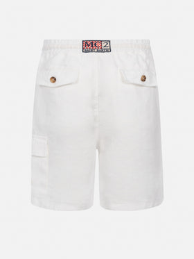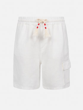 Scopri Marseille Jr, il perfetto equilibrio tra stile e comfort. Questi bermuda in lino per bambini sono dotati di vita elasticizzata con coulisse, garantendo una vestibilità sicura e confortevole. Pensati per la massima funzionalità, includono tasche laterali, una tasca utility sulla gamba sinistra e tasche posteriori con patta e bottoni. La chiusura frontale nascosta dona un look pulito, mentre l’etichetta brandizzata sul retro aggiunge un tocco di raffinatezza. Bermuda Marseille Jr in lino Colore bianco tinta unita Vita elasticizzata Chiusura con coulisse Tasche laterali alla francese Tasca utility sulla gamba sinistra Tasche posteriori con chiusura a bottone Etichetta posteriore con logo esclusivo MC2 Saint Barth Vestibilità regolare Composizione: 100% lino La taglia 6 anni ha una mezza circonferenza vita di 34 cm (estensibile) e varia di 1/2 cm a seconda della taglia; lunghezza di 36 cm (cintura inclusa) e varia di 1,5/3 cm per ogni taglia, a seconda della misura Nota: tutte le misure indicate sono approssimative e possono variare di 1-2 cm a causa della misurazione manuale.